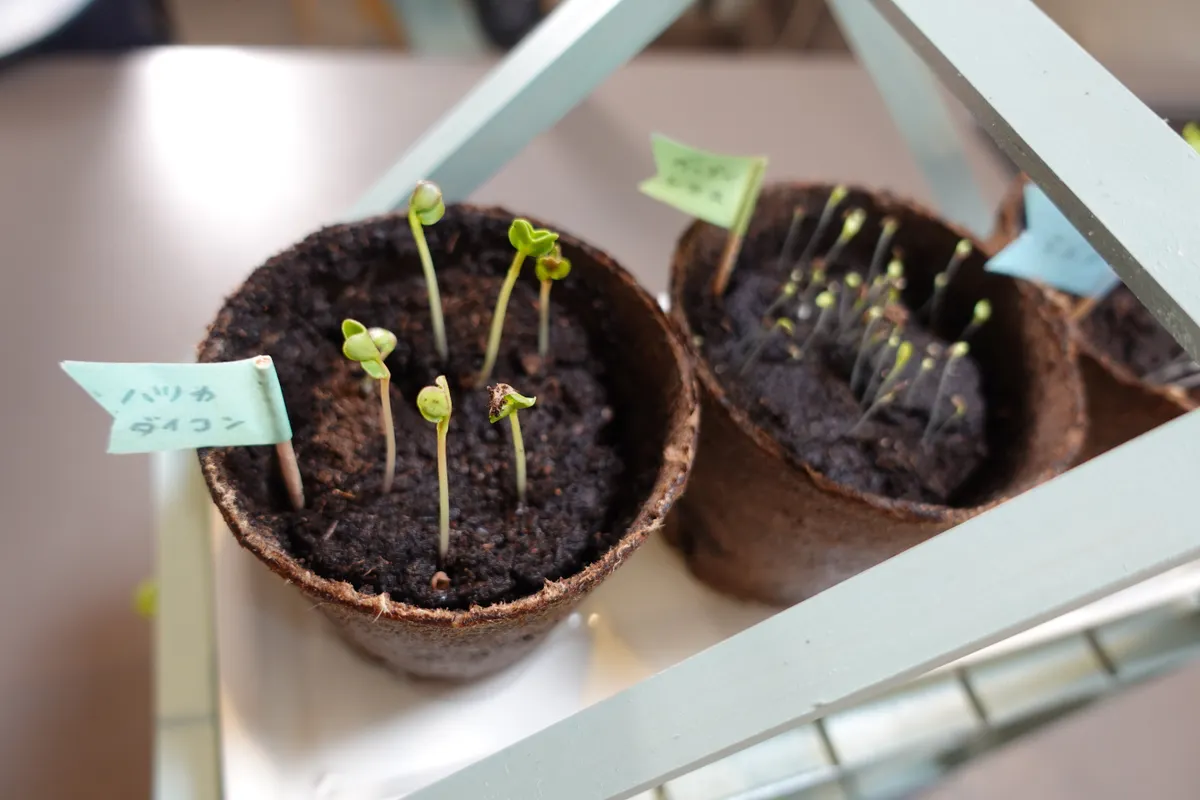 ワークショップでは、サカタのタネ「ジフィーポット」に実際に6つのポットに種をまいてお持ち帰りいただきます♪