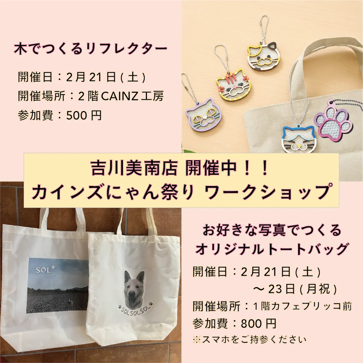 また、近隣店舗のカインズ 吉川美南店において猫の日にちなんだワークショップを開催します🐈