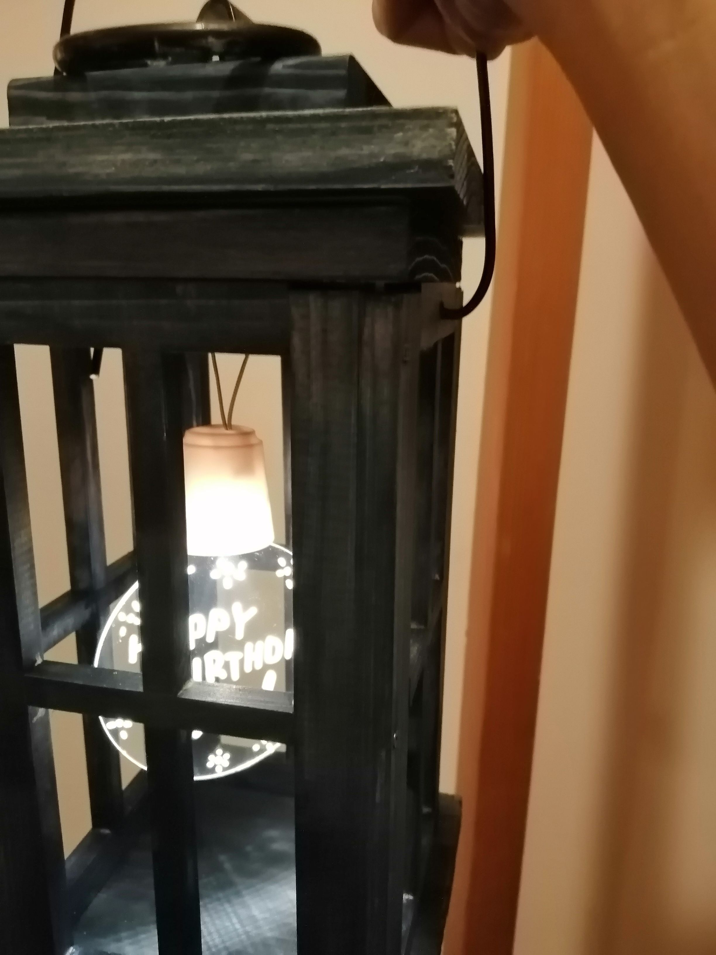 投稿を表示シックなランタンにメッセージ入りライト✨