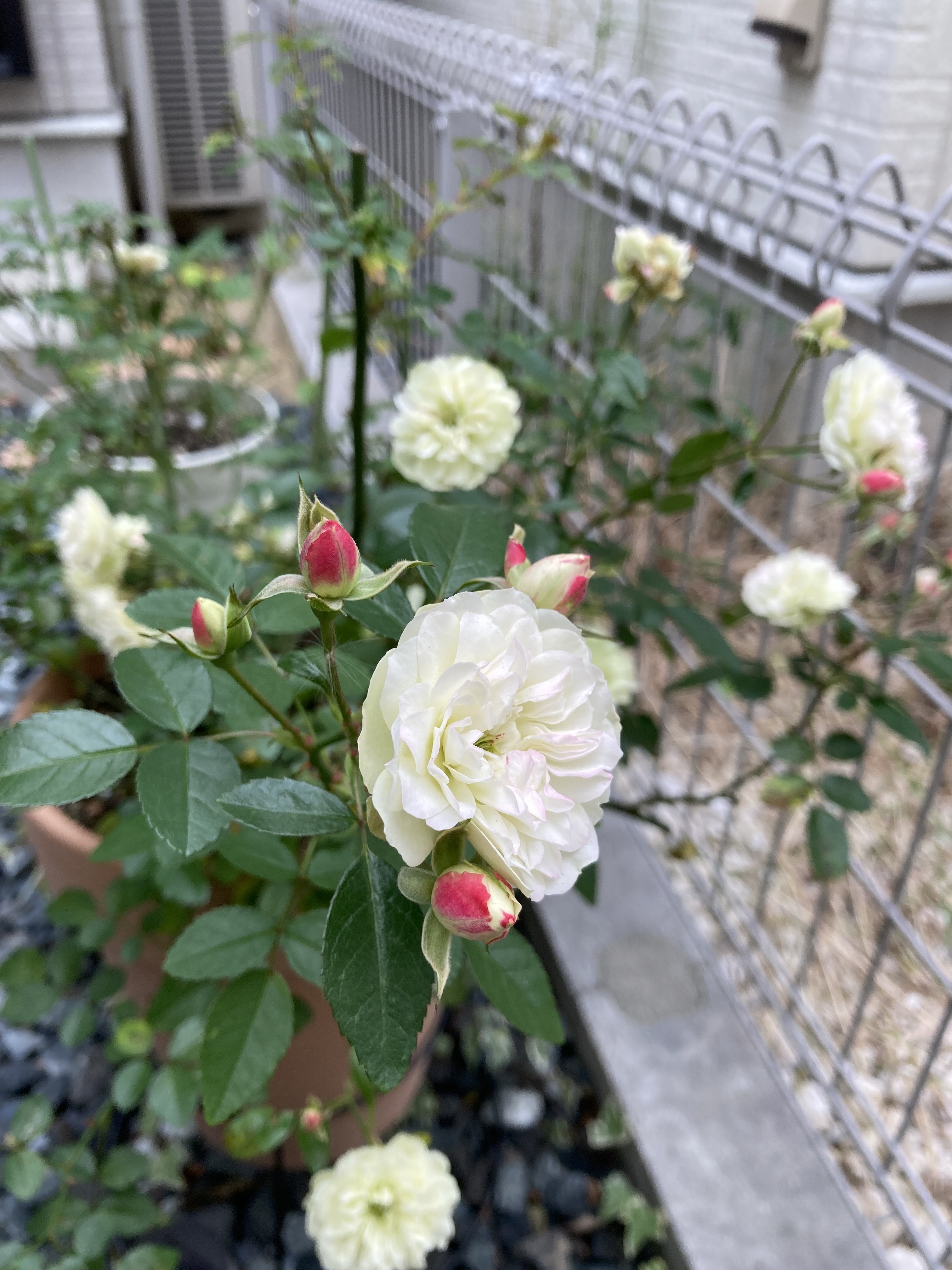 咲いた薔薇に微かに残る赤がオシャレ🥰