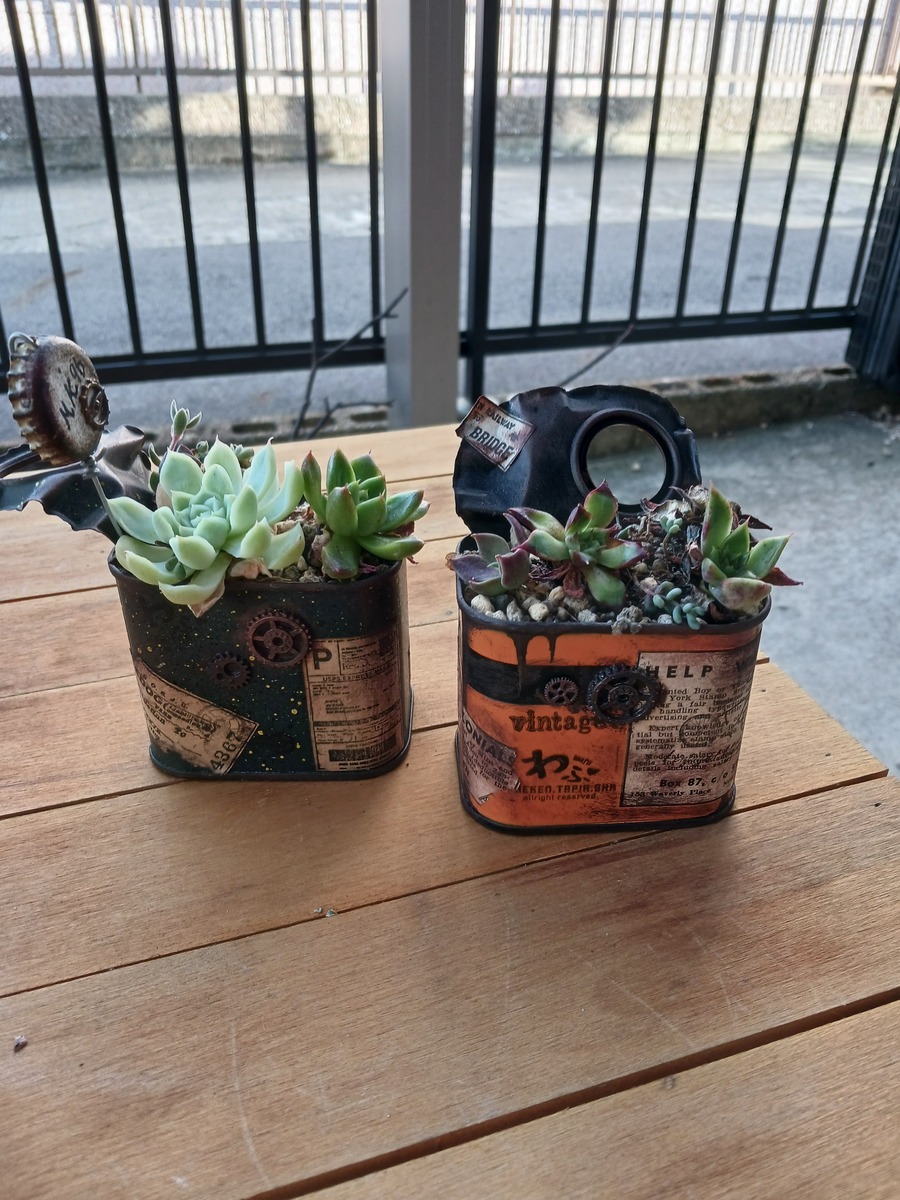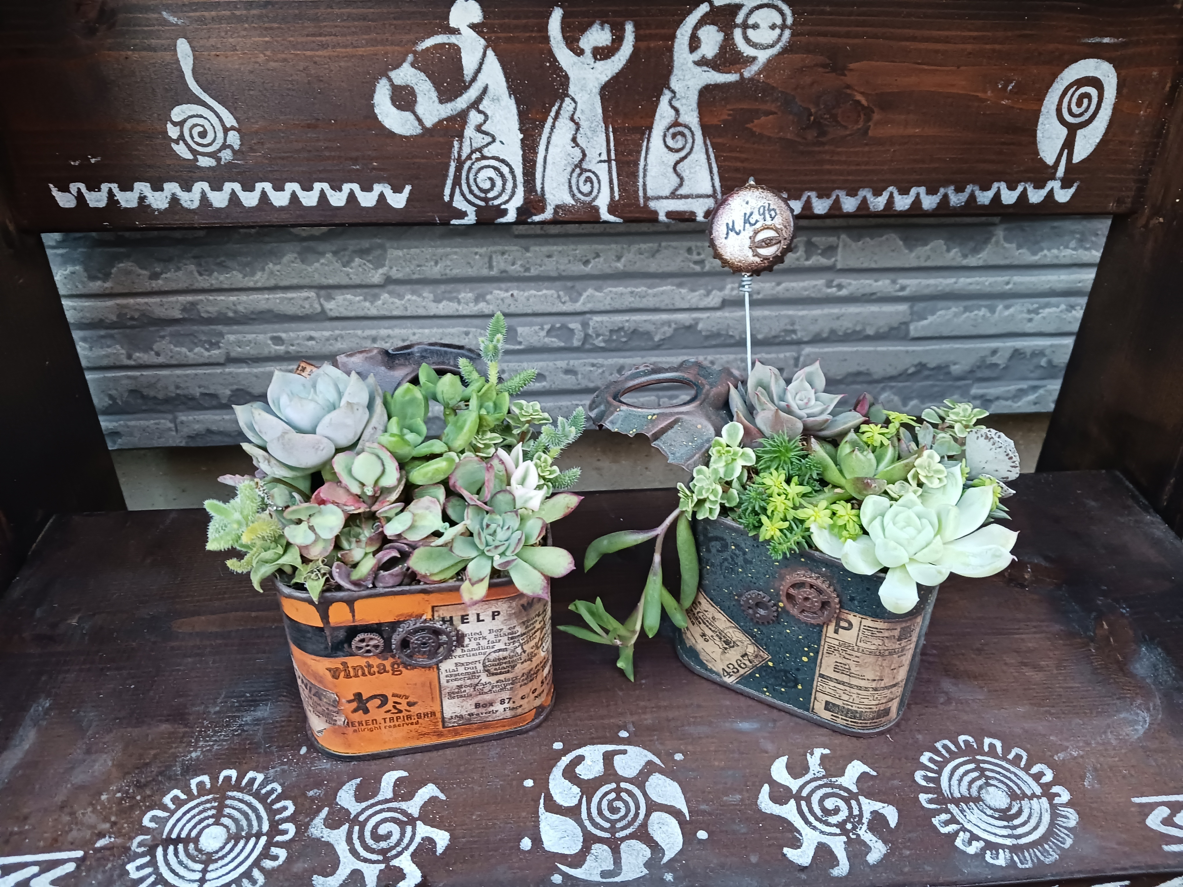 投稿を表示カッコイイ缶にピックに寄せ植え♥