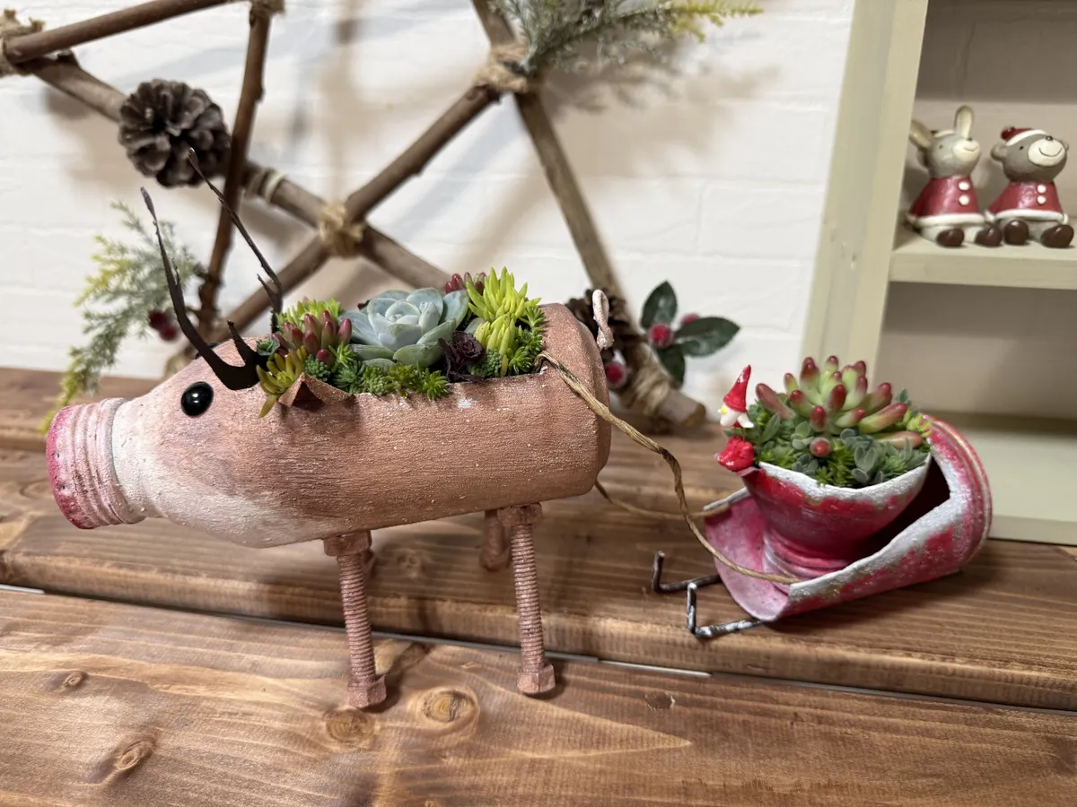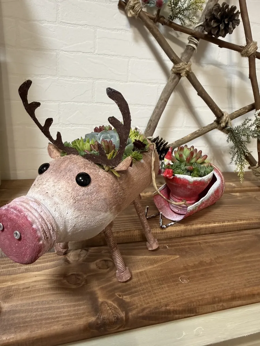 投稿を表示すごく可愛いですね🫎トナカイさんにもソリにも他肉が植えられてて素敵です✨