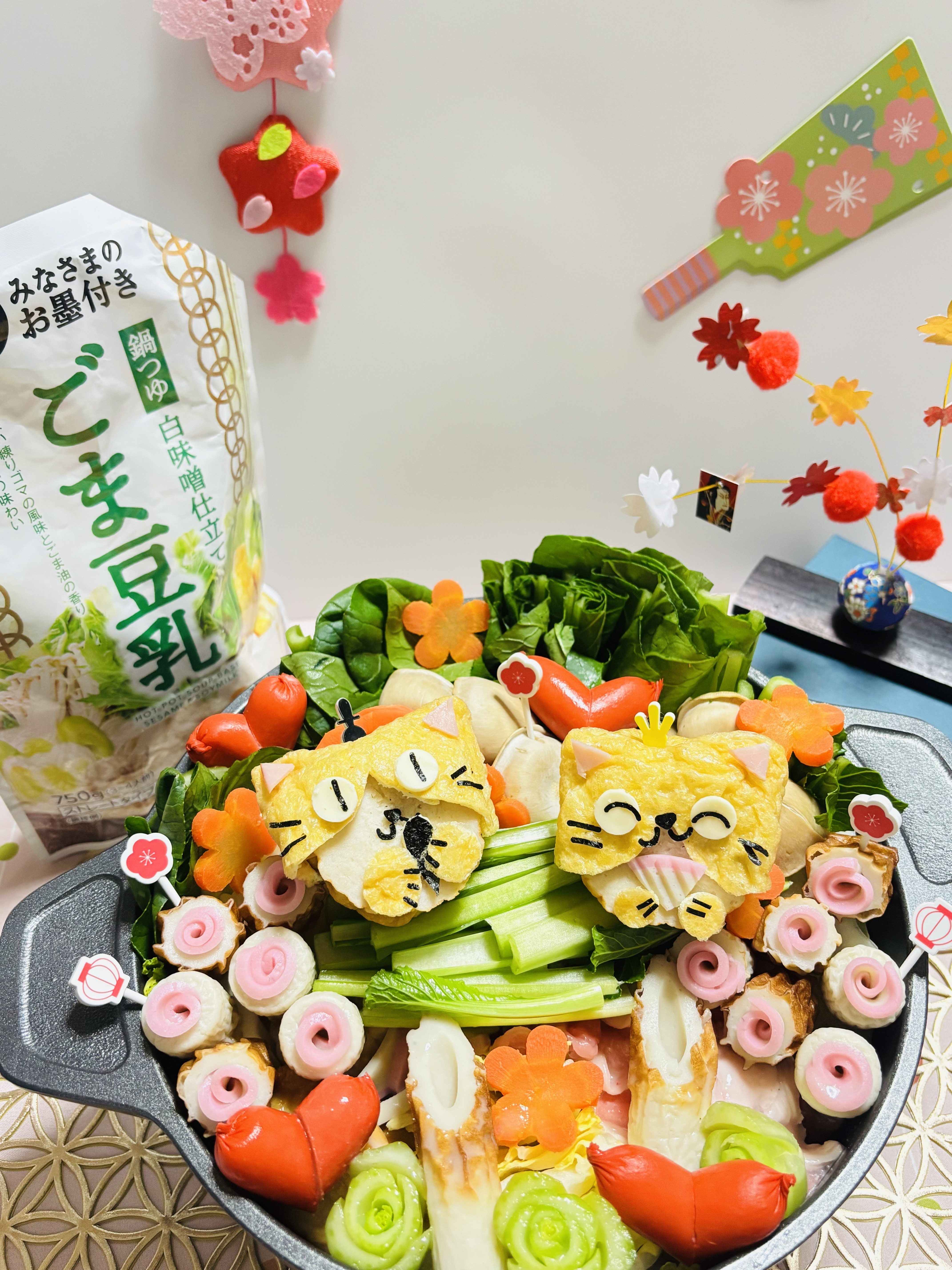 お鍋の中が雛壇みたいで賑やか、楽しいですね。 🙇