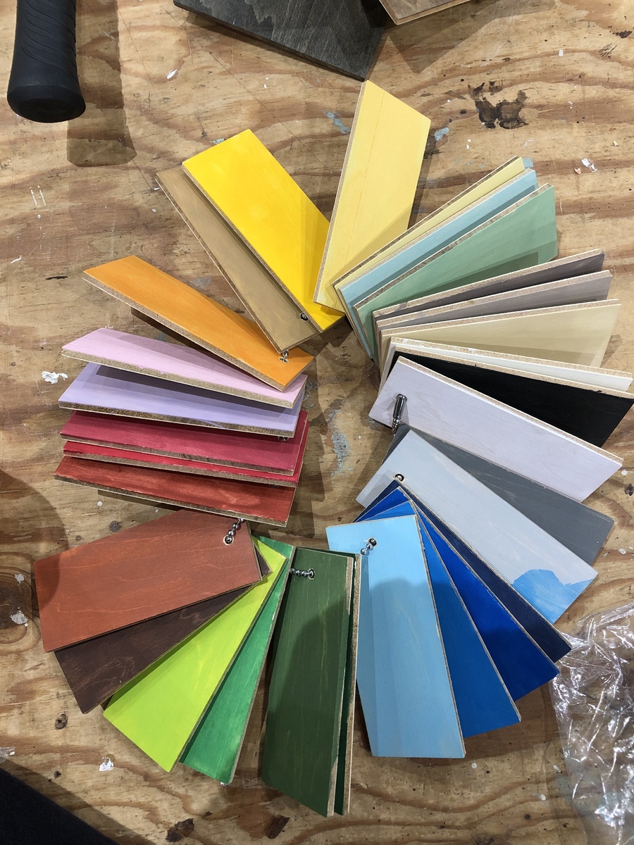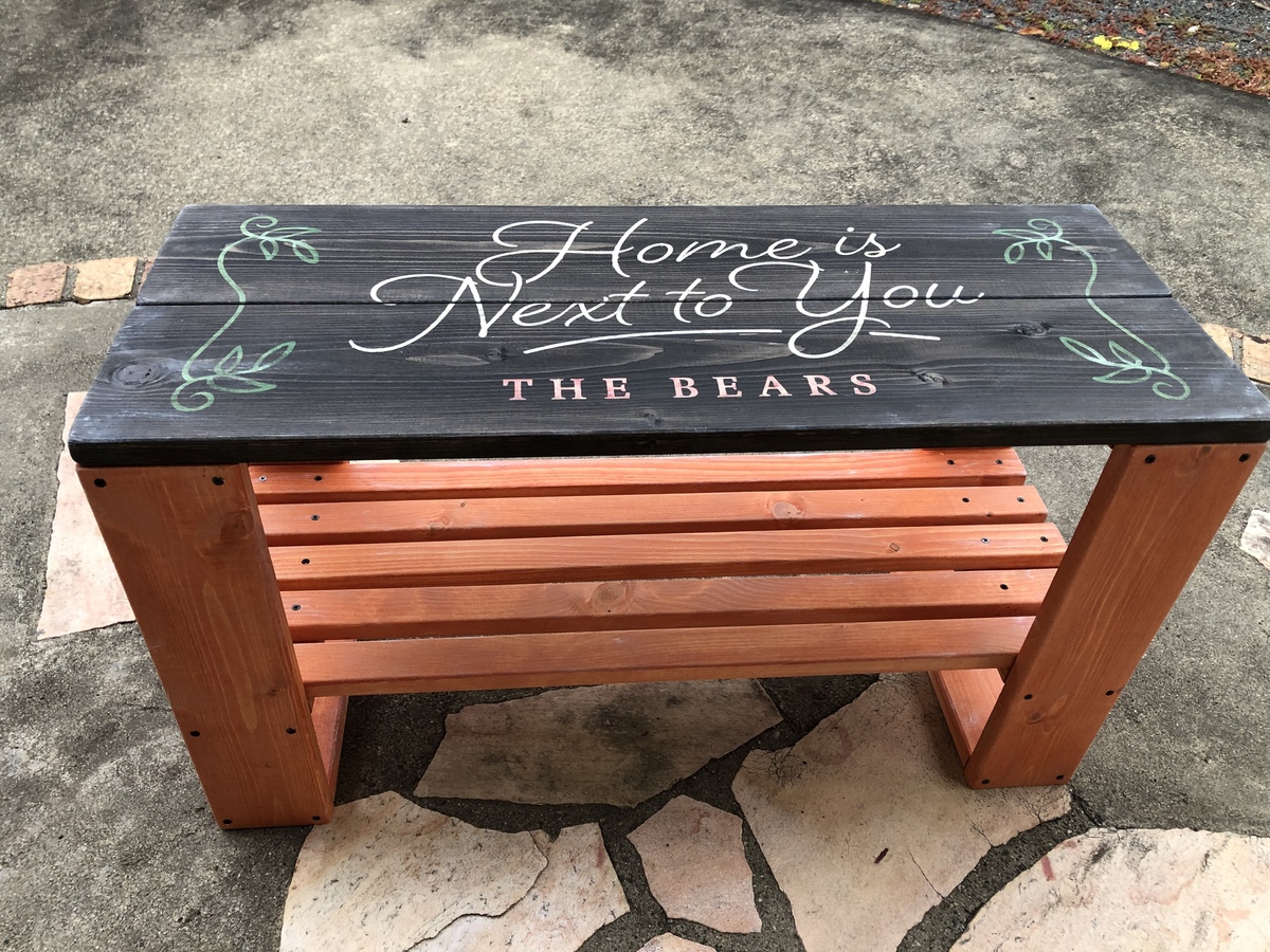 ステンシルだけじゃなくてシェルフベンチ本体の色も迷いますね😊