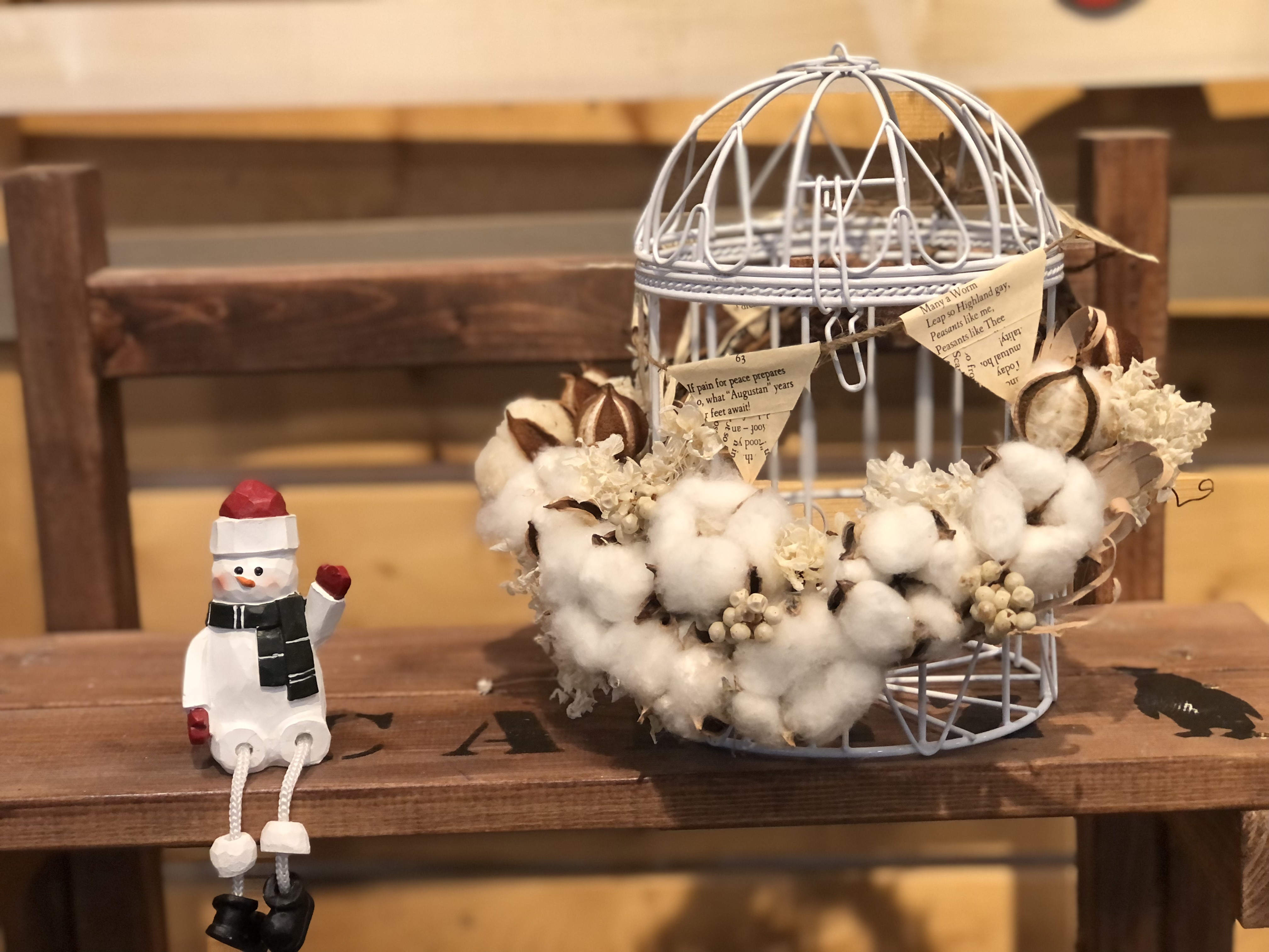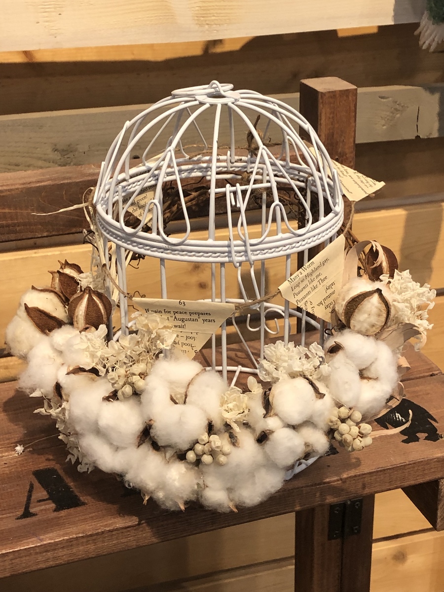ほわほわで、あったかそうで、クリスマスを予感させる感じがあって、すてきな鳥かごリースですね♡♡