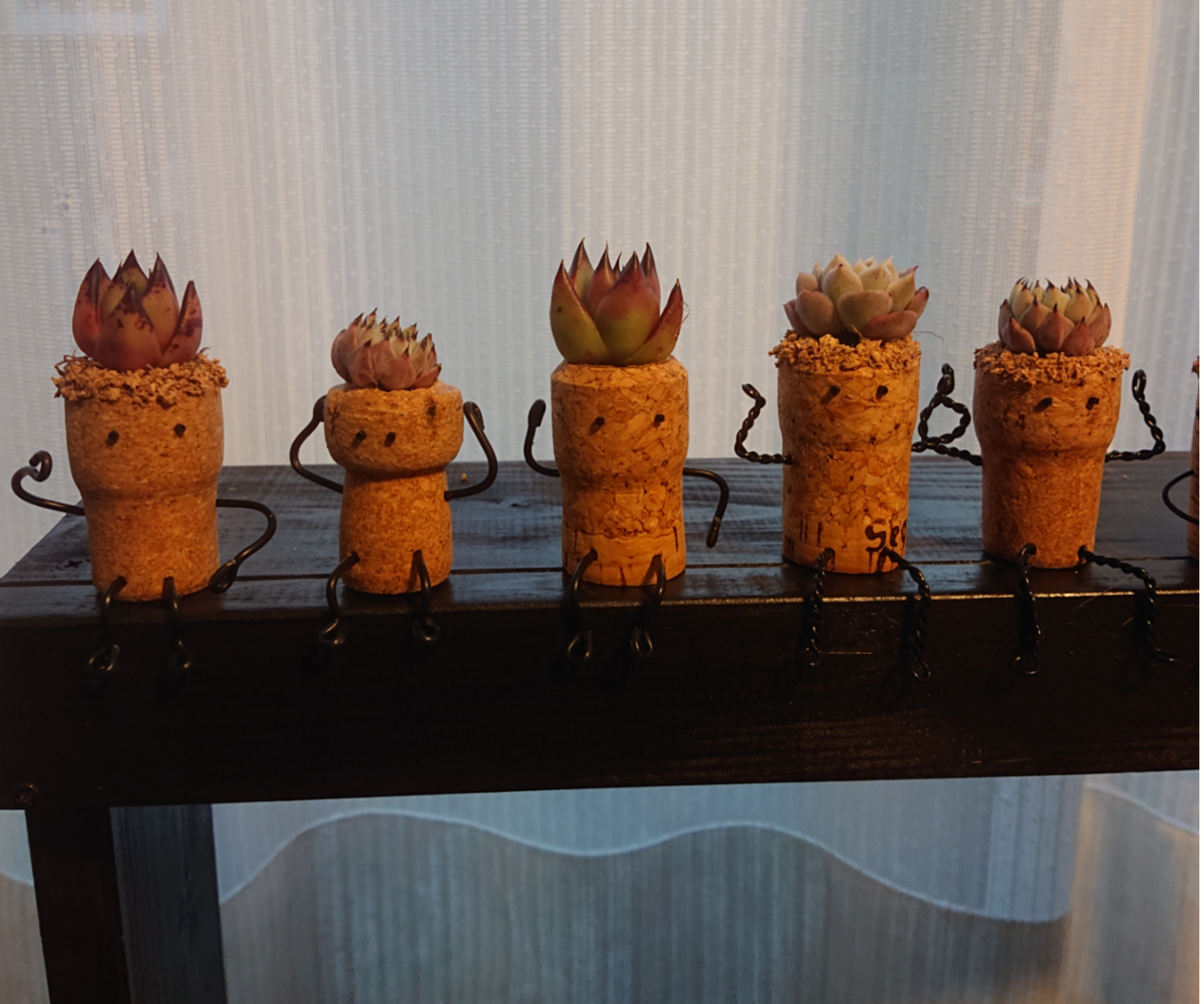 多肉ちゃんを頭に乗せて、手足や、メガネで、表情を変えて、本当に、アイデアですね〜😱💦