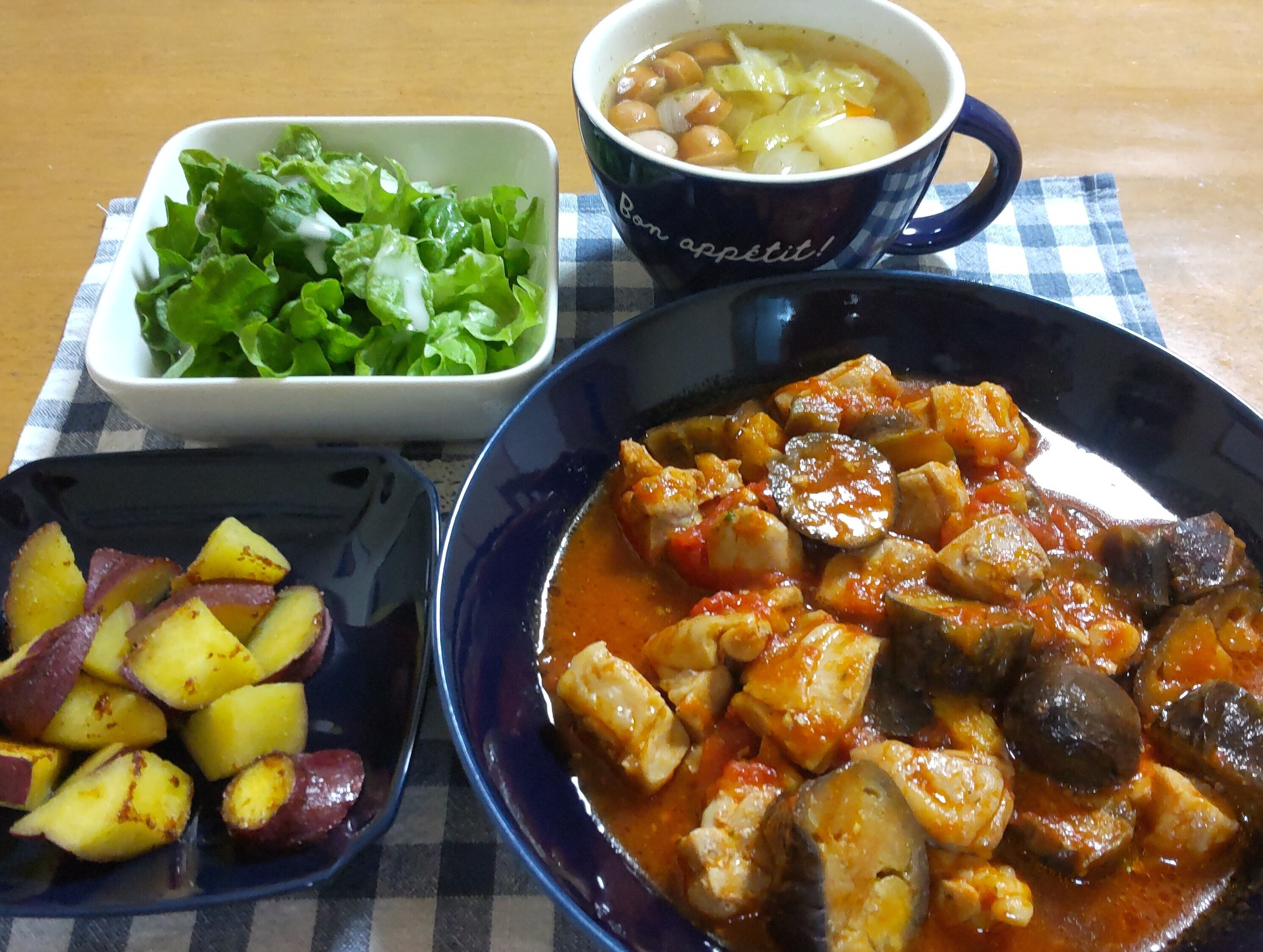 投稿を表示トマト味のチキンと茄子🍆🍗