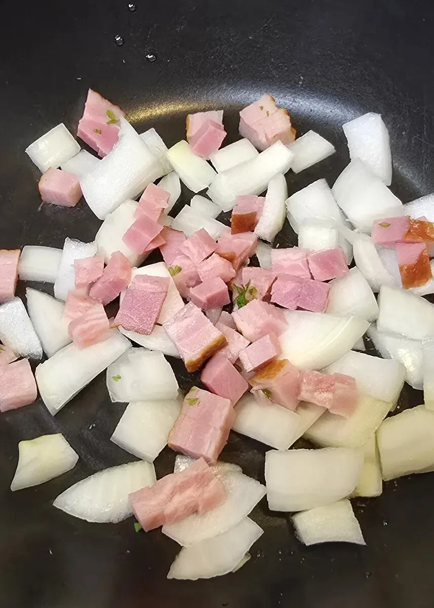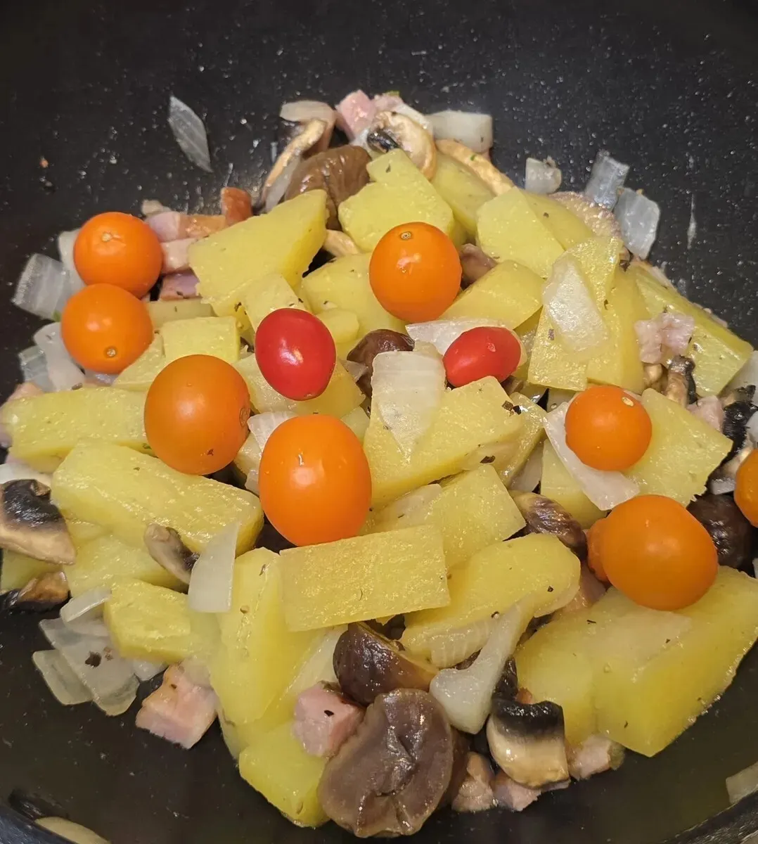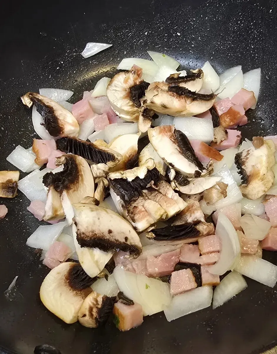 反省点は、卵のサイズが小さかったので 3個に増やすか、具材を減らすかすればよかったナという点と、フライパンのチョイスも直径小さめで深さがあるものにすればよかったナという点です📝
