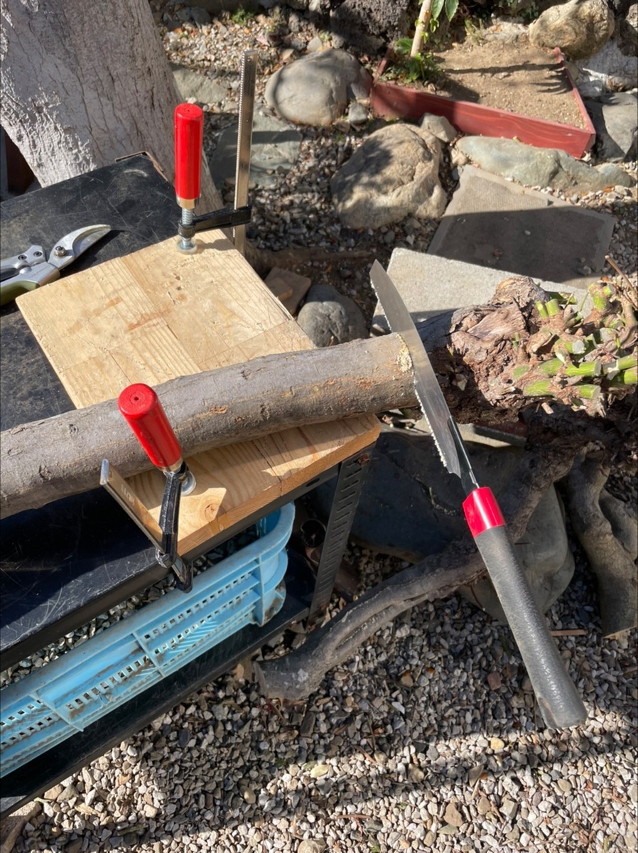 昨年末、伐採に踏み込んだ紅葉(リンク→ https://diy-square.cainz.com/announcements/be2fvwyryuwy4si9 )の太枝の処理の為にとりあえず間に合わせで。