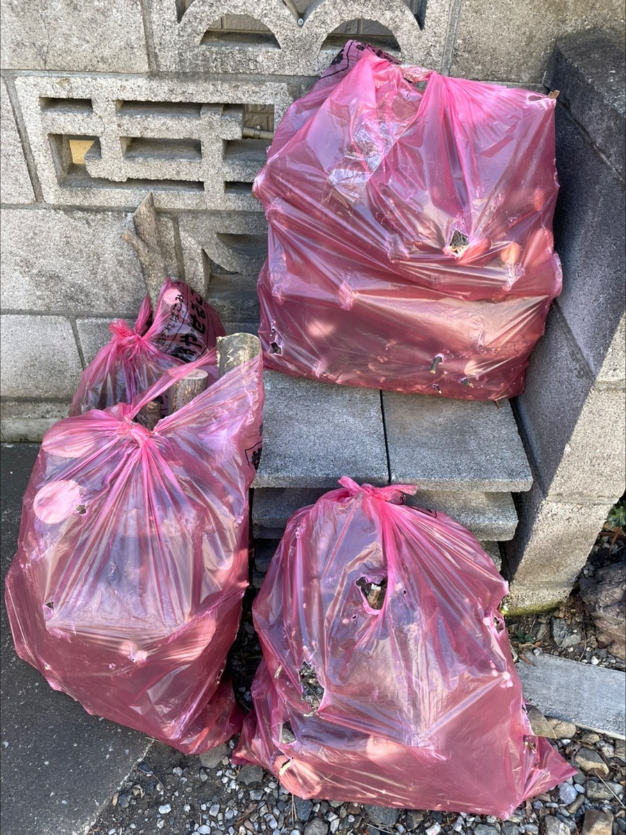 年末から少しずつカットしてた太枝、ようやくゴミ出し準備が整いました。↓