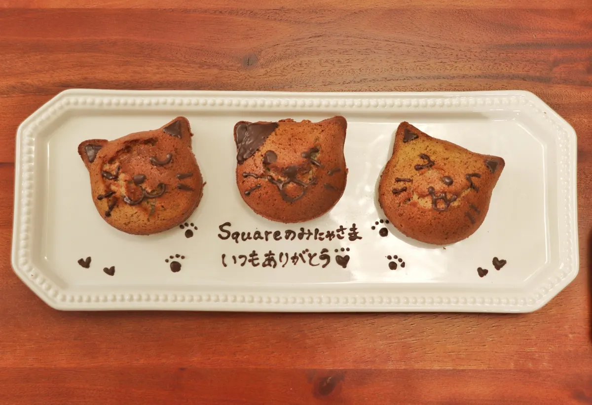 ②チョコで1匹ずつ違う猫のお顔とメッセージを描きました🐈✨