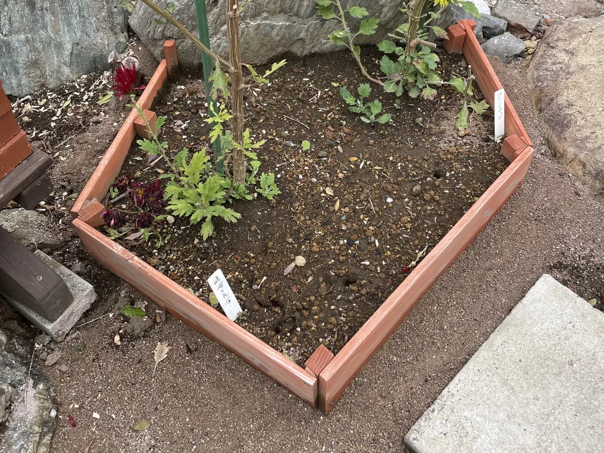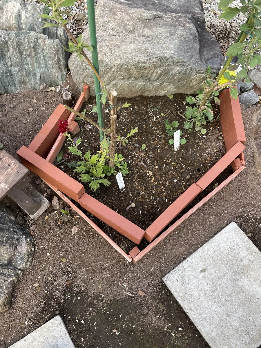 11月11日の作品投稿で小花壇周りを人工砂を撒いた小花壇(リンク→ https://diy-square.cainz.com/announcements/dgaib3pxe1gqsr27 )を、木材の痛みが激しかったので、半ペンで再構築しました。