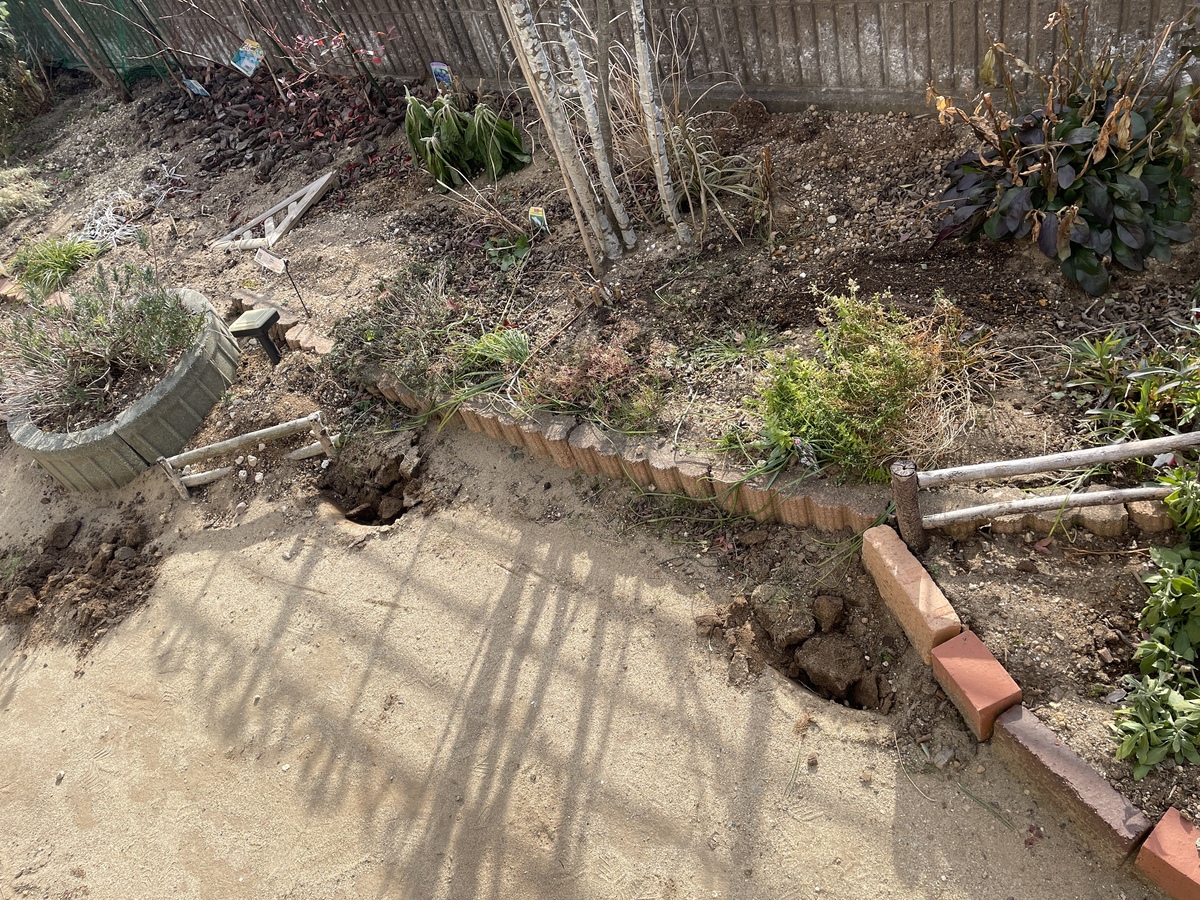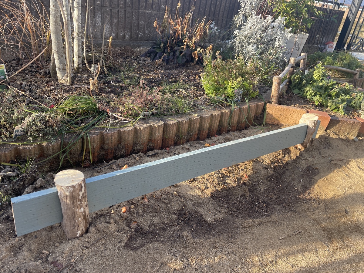 速攻、丸太くり抜いて柵を作ってしまうなんてすごいです😄咲くのが楽しみですね😉✨