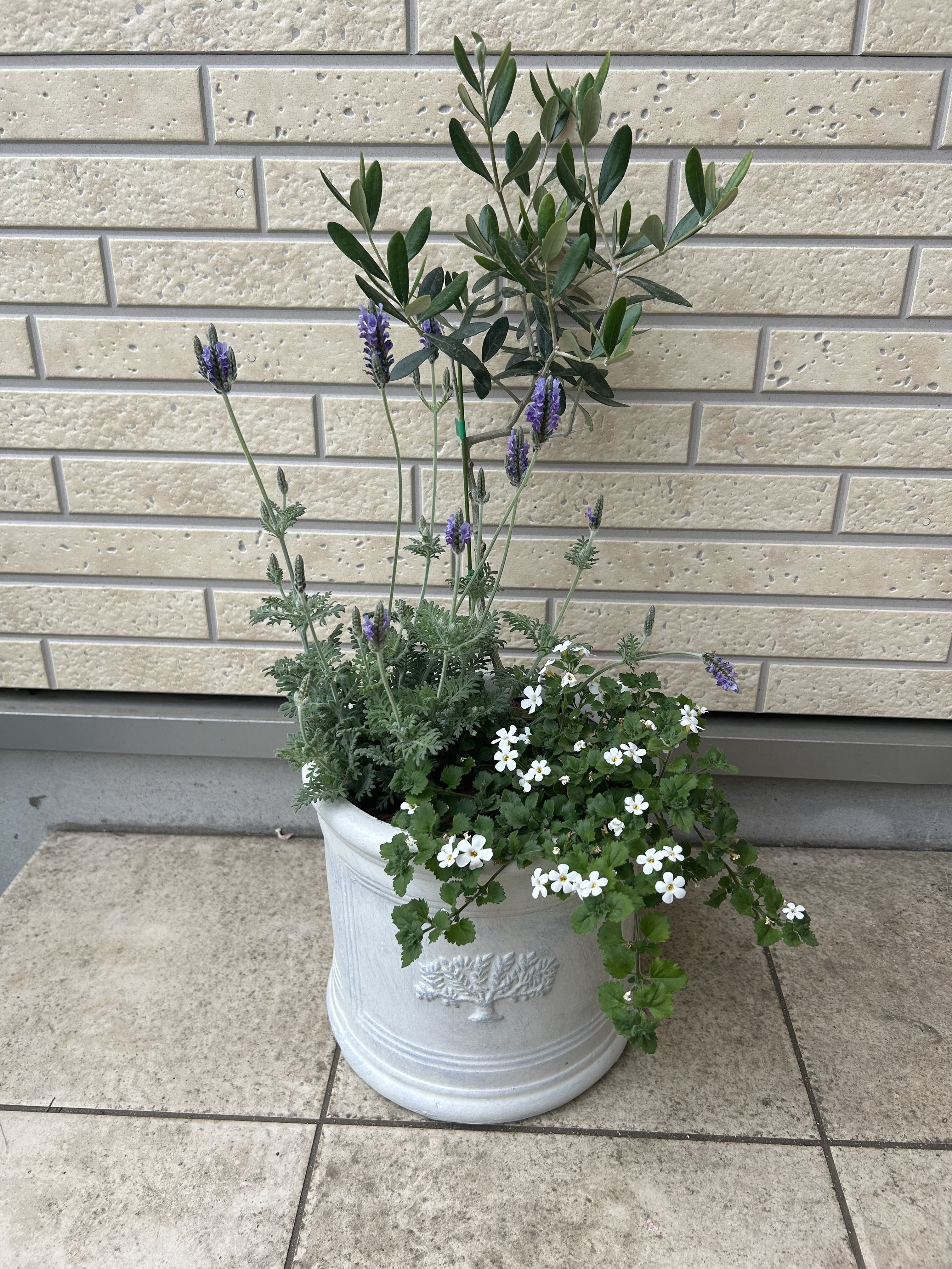 前にはレースラベンダーとバコパ、バコパは可愛くて育ててみたかったので嬉しい♡