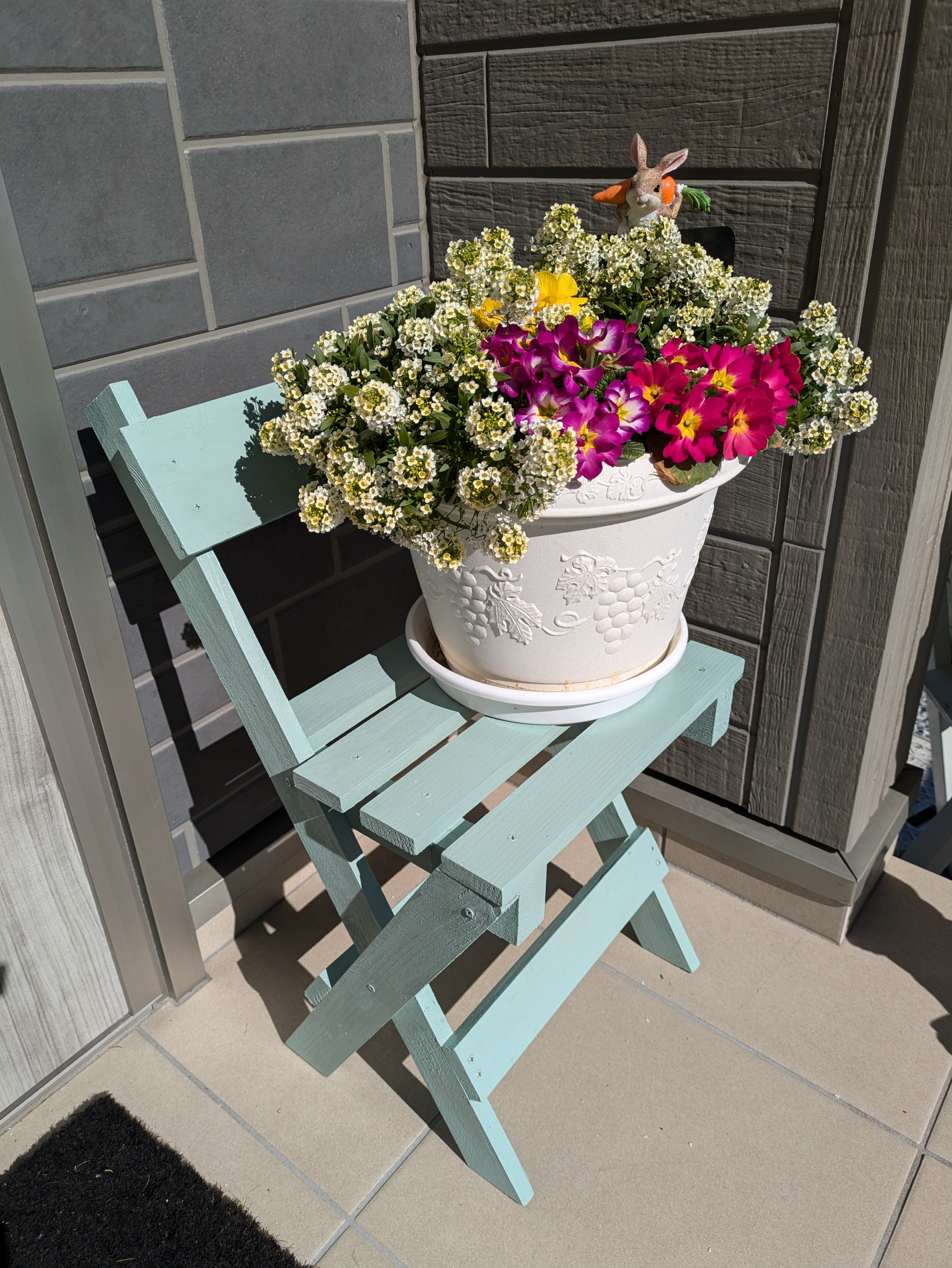 投稿を表示素敵なガーデンチェアーですね、背もたれの所の角度をつけるとお花が大きくなっても大丈夫そうですね。