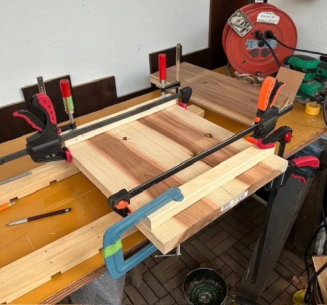 雨模様で湿度高いから木工用ボンドが乾きにくいなー💦