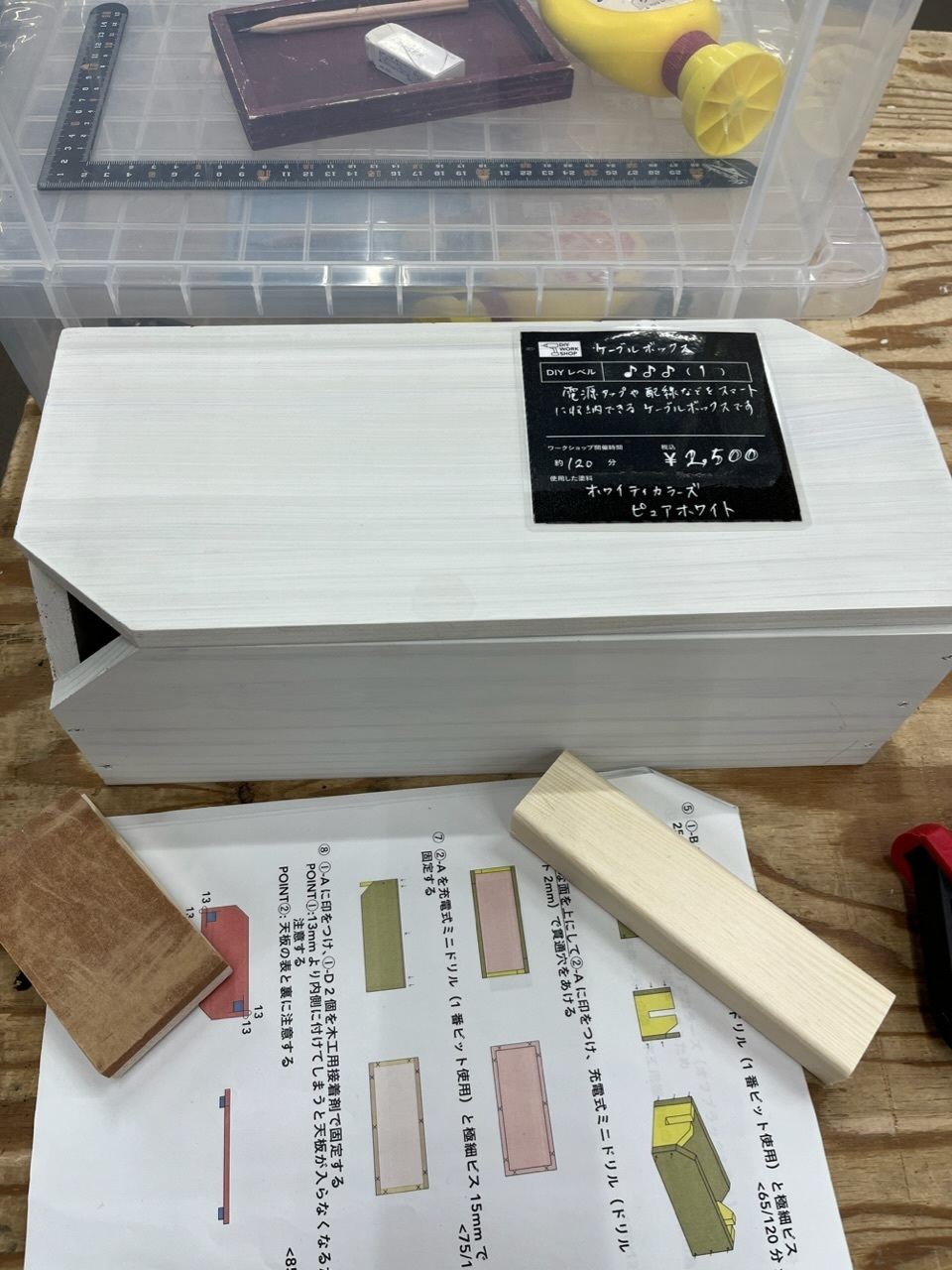 トップ > DIY > インテリア > ケーブルボックス 緋梅 2022/12/27 22:38 ケーブルボックス ケーブルボックスを作りました。 ノコギリも難関ですが、今日は初めて鑿《のみ》も使いました。見本が白でしたが、早く乾くブラウンで。 乾いたら木口の色が抜けてくるので、何度も塗り重ねるうちにムラになるパターン。 今日も出来は今ひとつですが、これも個性と受け止めて持ち帰ります。 愛用品がまた一つ増えました。 ご指導くださった北本店の先生方、ありがとうございました。 いいね 共有する 共有する X LINE リンクをコピー コメントする 1 件の返信 (新着順) ミュートしたユーザーの投稿です。 投稿を表示 あにー 2022/12/28 19:32 とある工房で実物見てきました。思っていたより大きいのですね! キレイに作られていますね😊 いいね 返信する ミュートしたユーザーの投稿です。 投稿を表示 緋梅 2022/12/29 00:18 あにーさん コメントをありがとうございます。意外と大きいのです。コンセントを沢山差せるタップもすっぽり入るので、本当に便利。 塗り方が下手で、ムラになっている部分をリビングでどちら向きに置いたら隠せるだろう?と考えてばかりです😁。 次は見本の白を作りたくなりました。 いいね 返信する