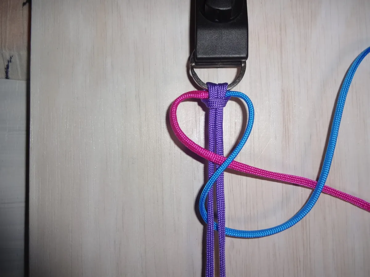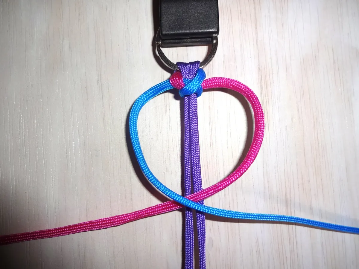 ↓ 青の先端を赤の上を通りハートの中を図の様にセット。