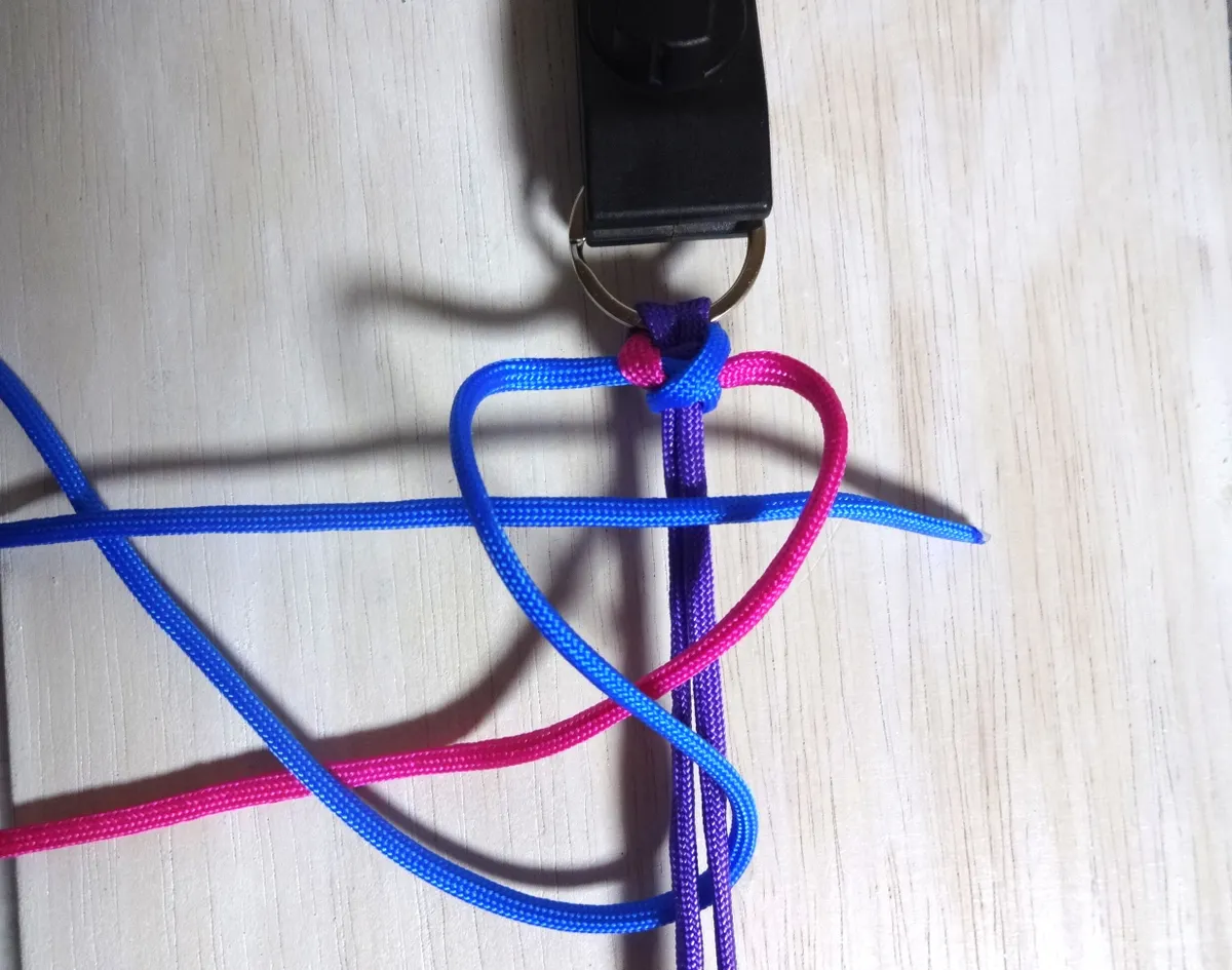 ↓ 締めるとこうなります。これで左右に赤が入りました。 一回転しました。