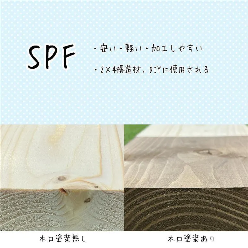 ・建築関係で2×4工法の構造材で使用され、DIYとしては棚や収納・壁下地などで使用される。