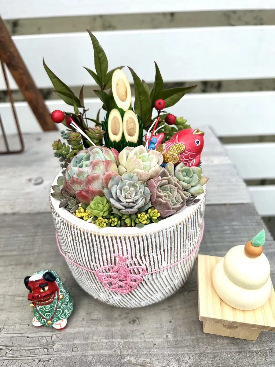 投稿を表示鯛入りの門松多肉寄せ植え素敵ですね😊🎶