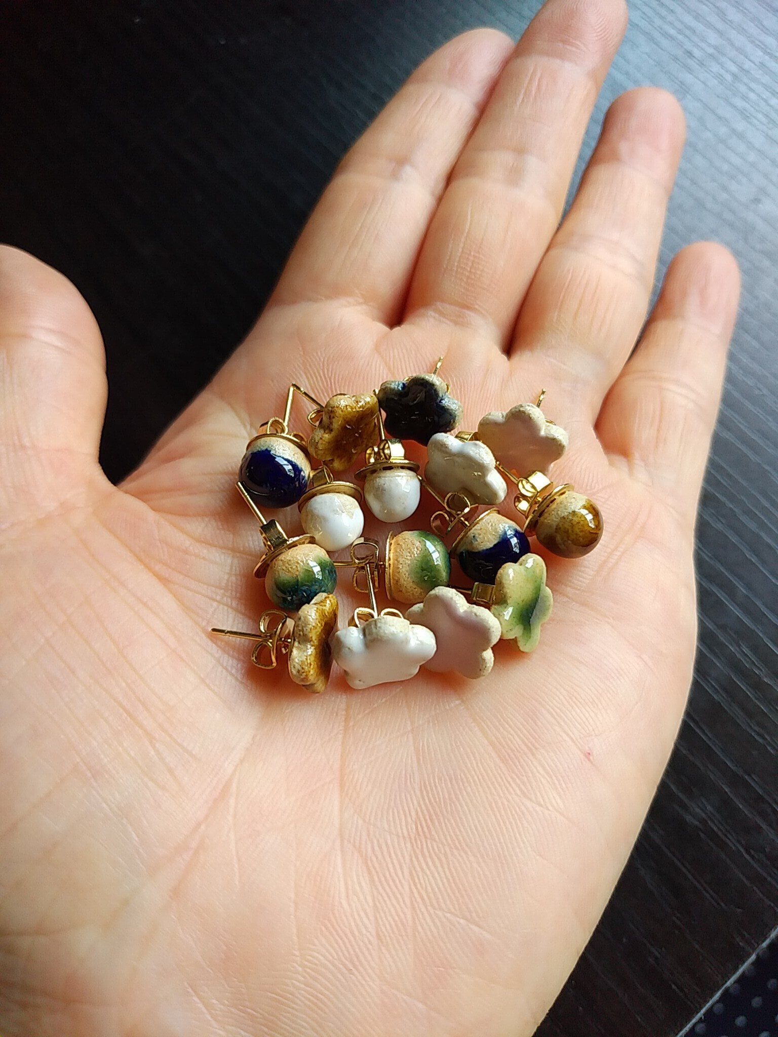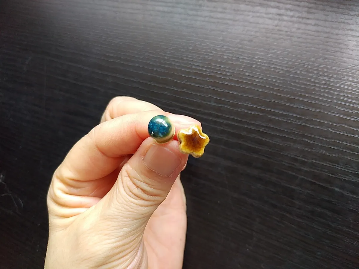 手が震えるくらい本当に小さいので、作るのも、施釉するのも、金具に接着するのも、それはそれは大変でした😅
