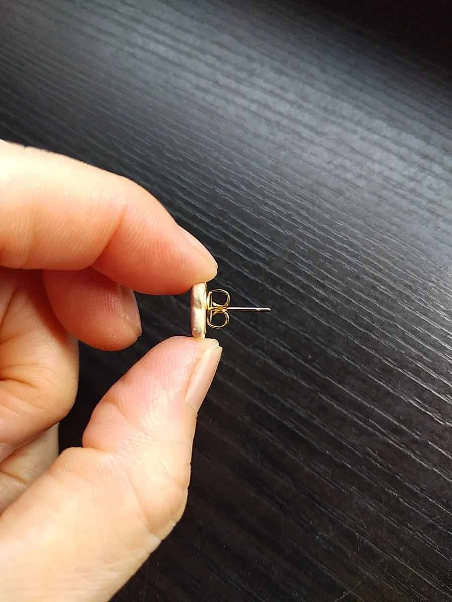 同じく、小さな小さなキャッチタイプのゴールドピアスに接着して完成。