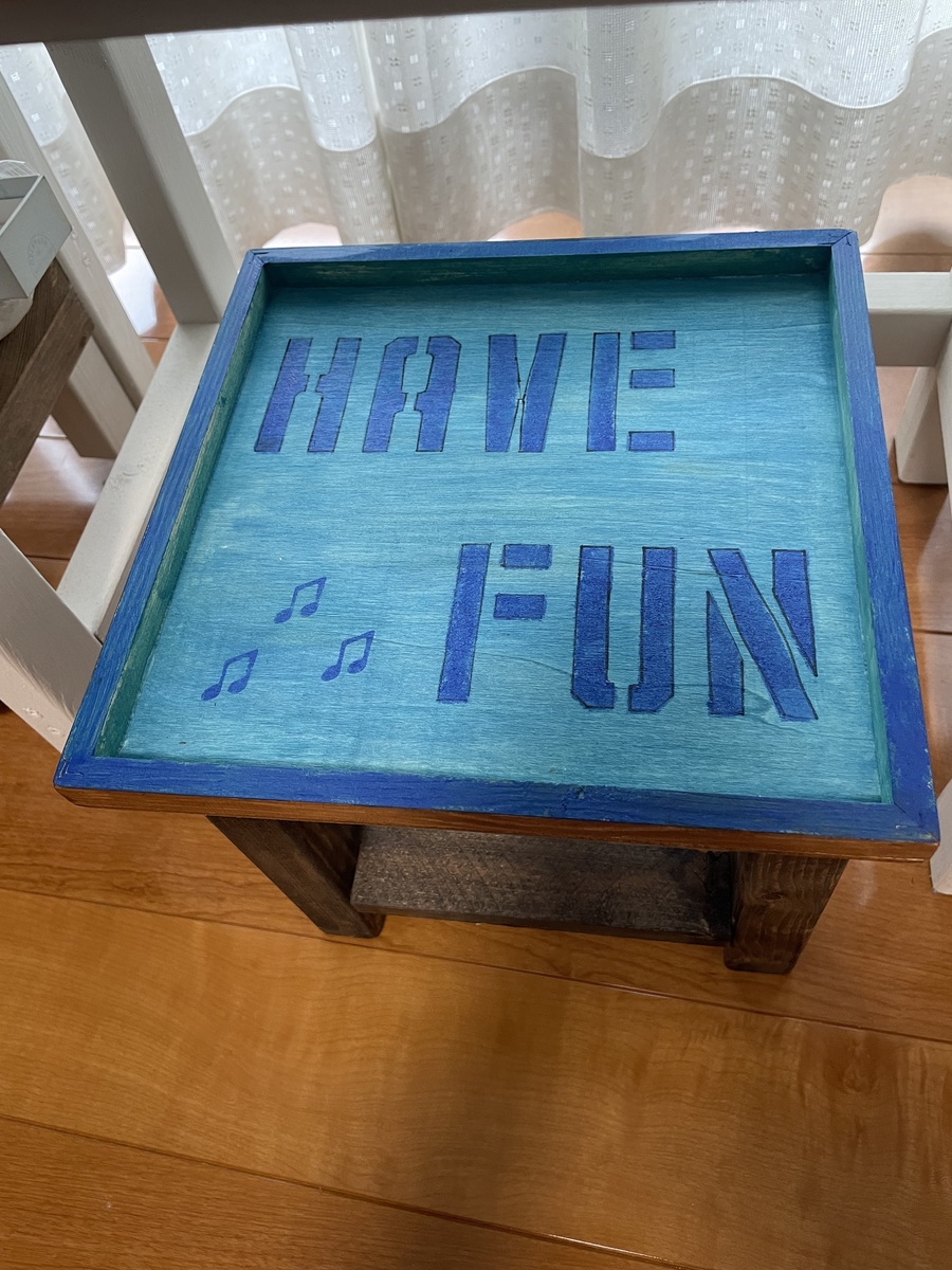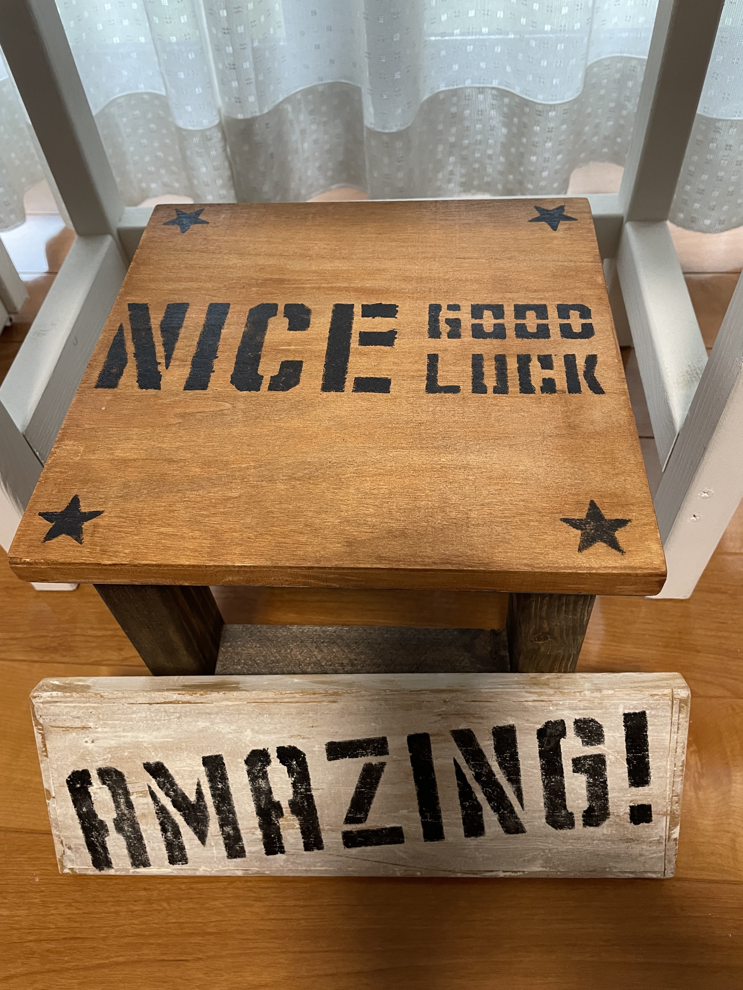 ちょっと色が😅こちらは最初マジックで縁取りしてからステンシルしてみました。