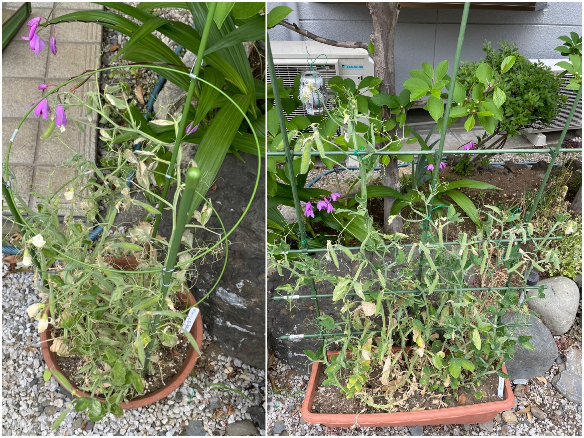 トップ > グリーン > 赤いスイートピーは咲かなかった。 ソラ5551 2023/05/11 12:28 赤いスイートピーは咲かなかった。 昨年10月に畑に種蒔きしてから3株になったのをプランターに植え替え、やっと会えたスイートピーも終焉です。枝豆状態です。 結局、赤いスイートピーには会えなかったけど、色々と学ばせてもらいました。 で、後片付けです。 結構根っこが凄いですね。フルイに掛けないと土の再利用は出来ない感じ。 さっ、来年はどうしますかねー。 いいね 共有する 共有する X LINE リンクをコピー コメントする 1 件の返信 (新着順) ミュートしたユーザーの投稿です。 投稿を表示 あにー 2023/05/11 15:06 ソラ5551さま💗 スイートピーは種取りしますか? いいね 返信する ミュートしたユーザーの投稿です。 投稿を表示 ソラ5551 2023/05/11 18:24 種取りは、しないですね。 赤くなかったし😅 いいね 返信する ミュートしたユーザーの投稿です。 投稿を表示 あにー 2023/05/11 18:59 質問した私が赤面😆 いいね 返信する