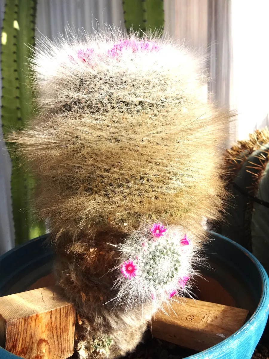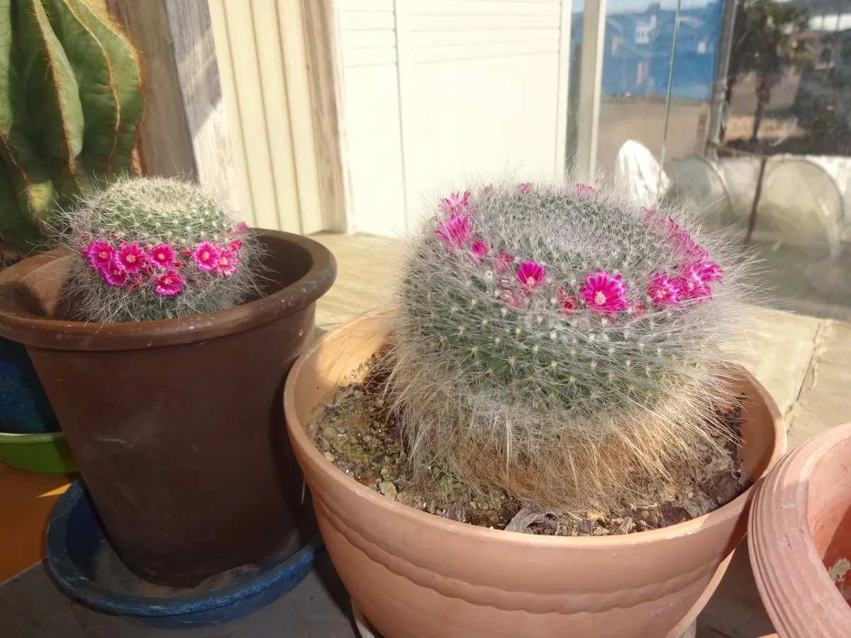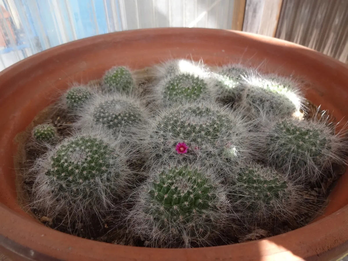 我が家の数あるサボテンで唯一 冬に咲く マミラリア です。冬の間中 小さい花が次々と。