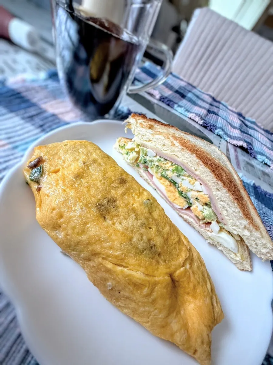 こんがりトーストのサンドウィッチ美味しそう😋🎶