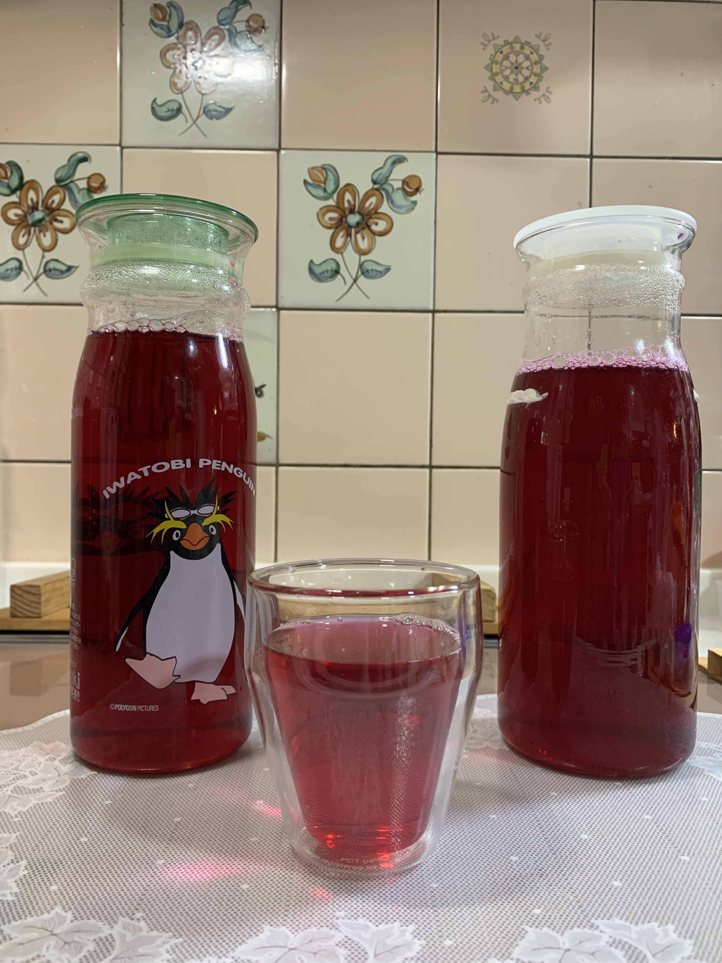 ペンギンのボトル、こんなに大きかったんだ😆 青しそジュースの時の写真だと 牛乳位かと思ってました😅😅