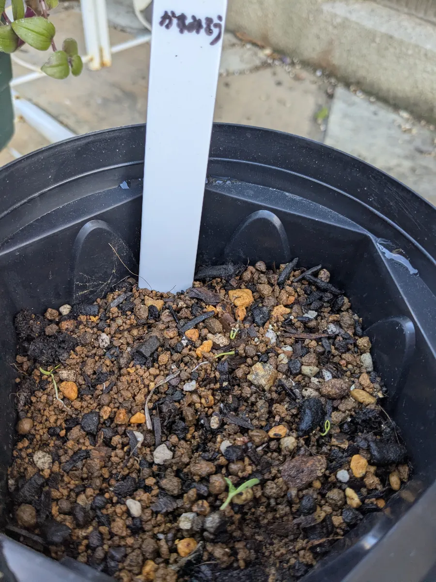 12/2に出てきたカスミソウの可愛い芽が、今日測量に来たリフォーム会社の女の人に蹴飛ばされ、砂利の上に飛ばされました😭