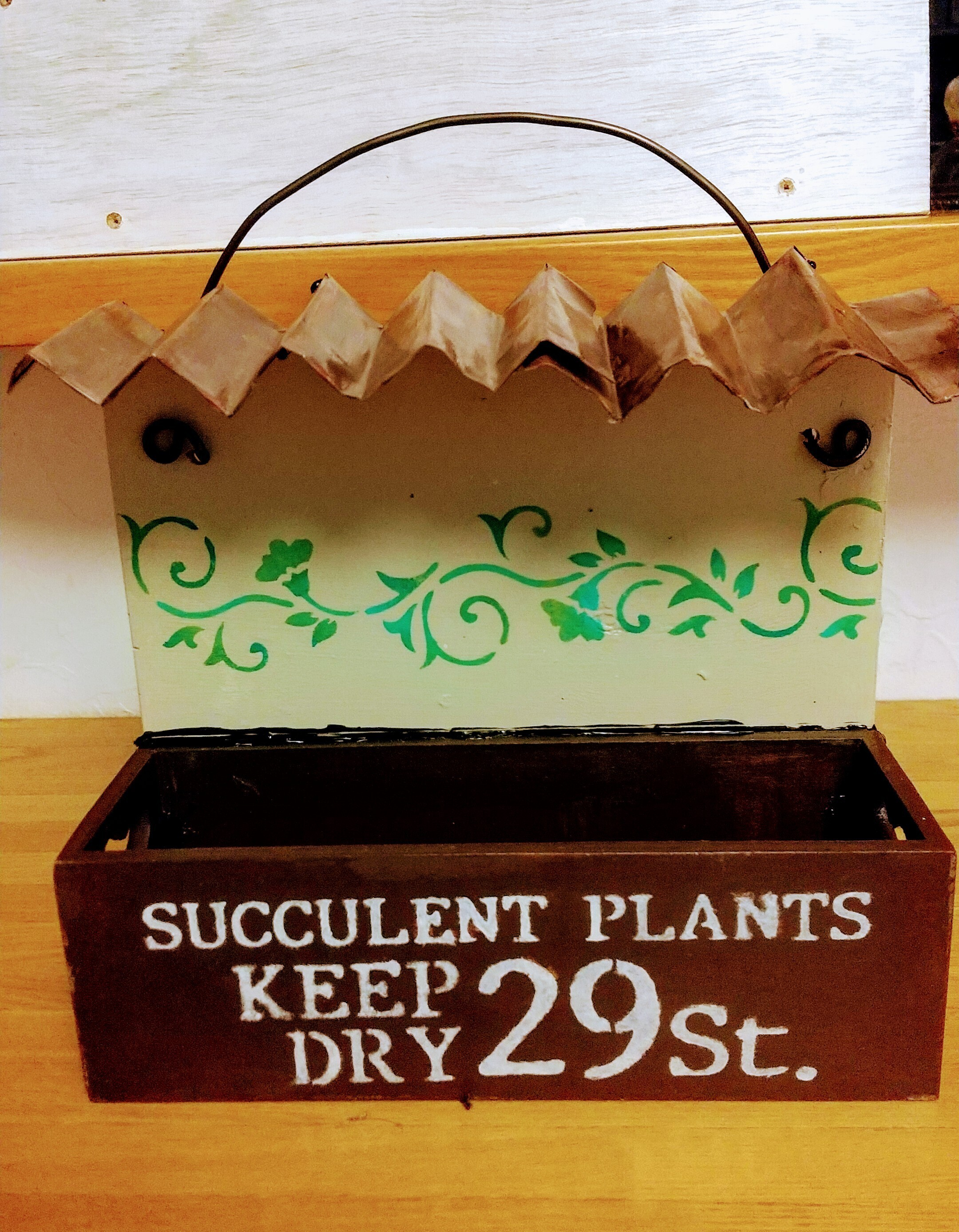 投稿を表示元の100均のガーリーな木箱が唯一無二のプランターに大変身しましたねー🎶