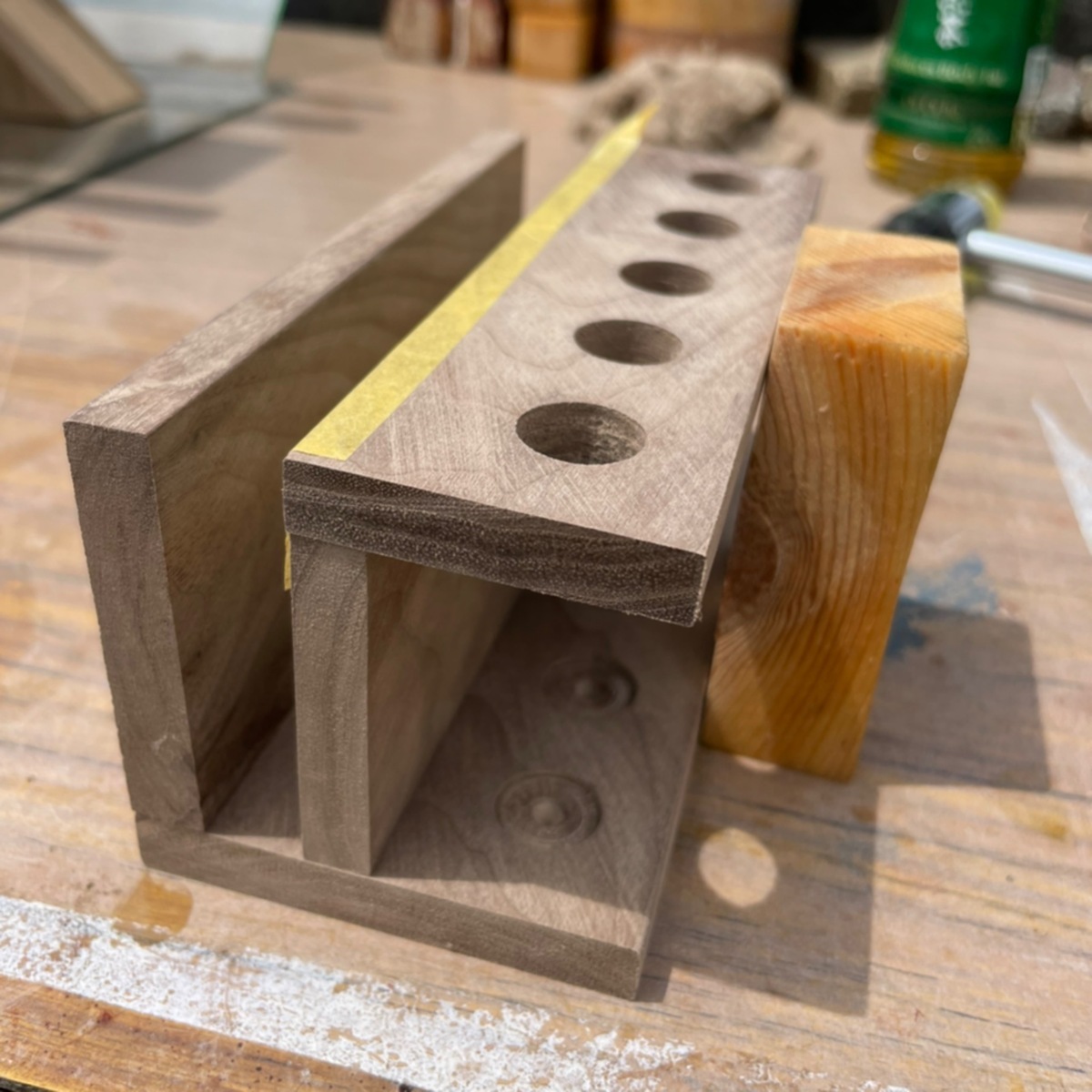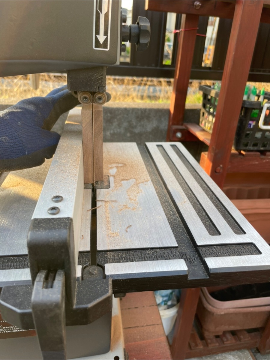 ウォールナット端材を約10ミリ厚に製材して作りました。形状は、Pinterestをヒントに。