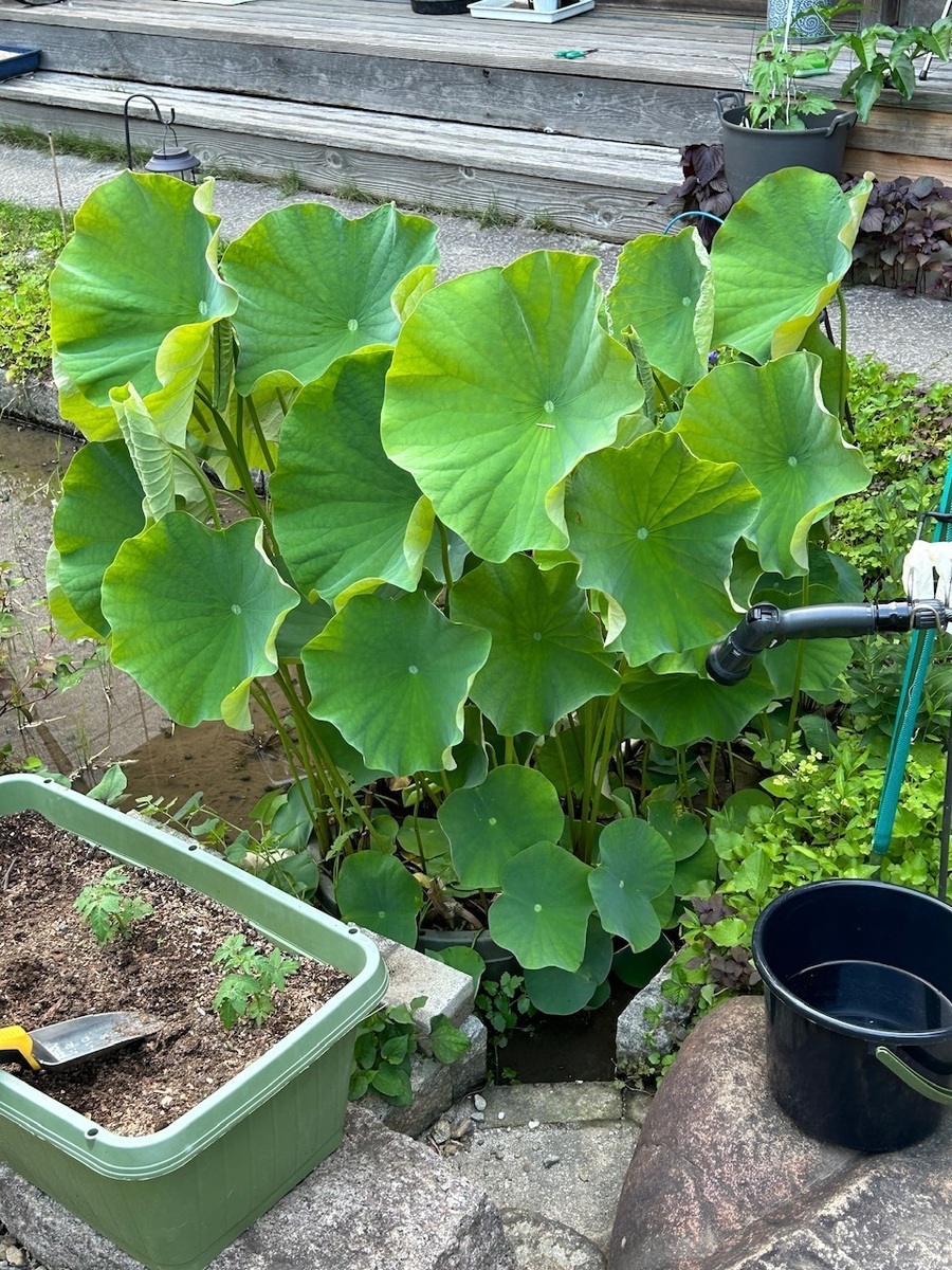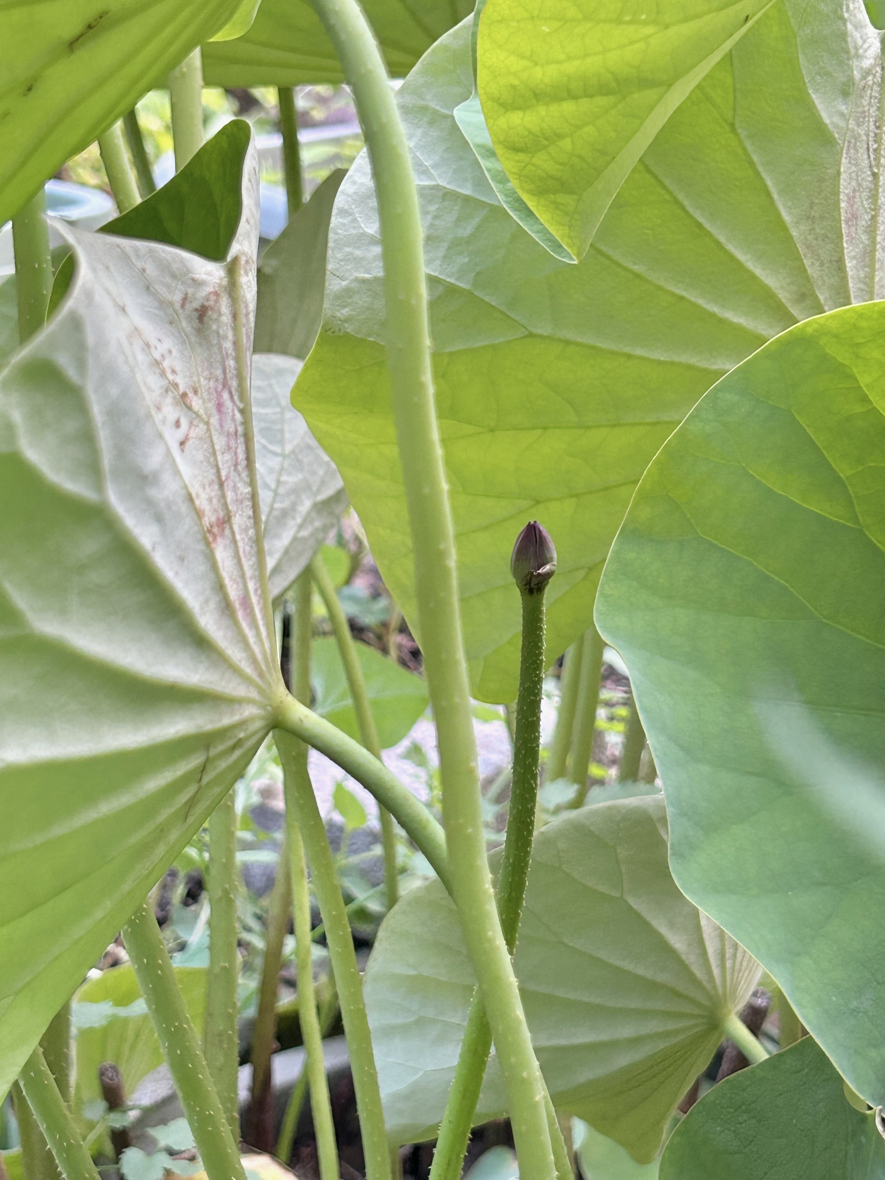 デリケートなハスの花が、二重生活をしているシダーローズさんの為に蕾を付けてくれとんですね。😌🌸💕