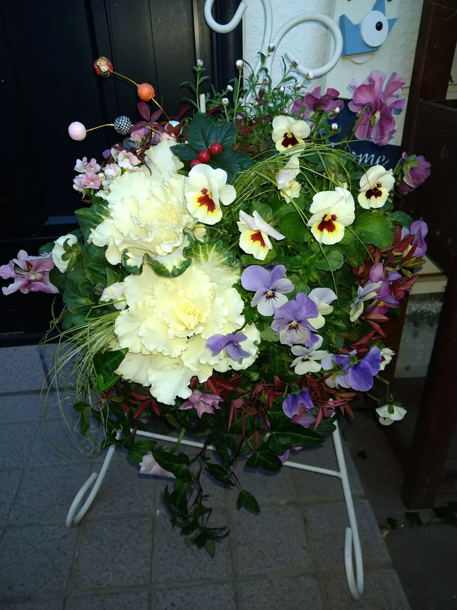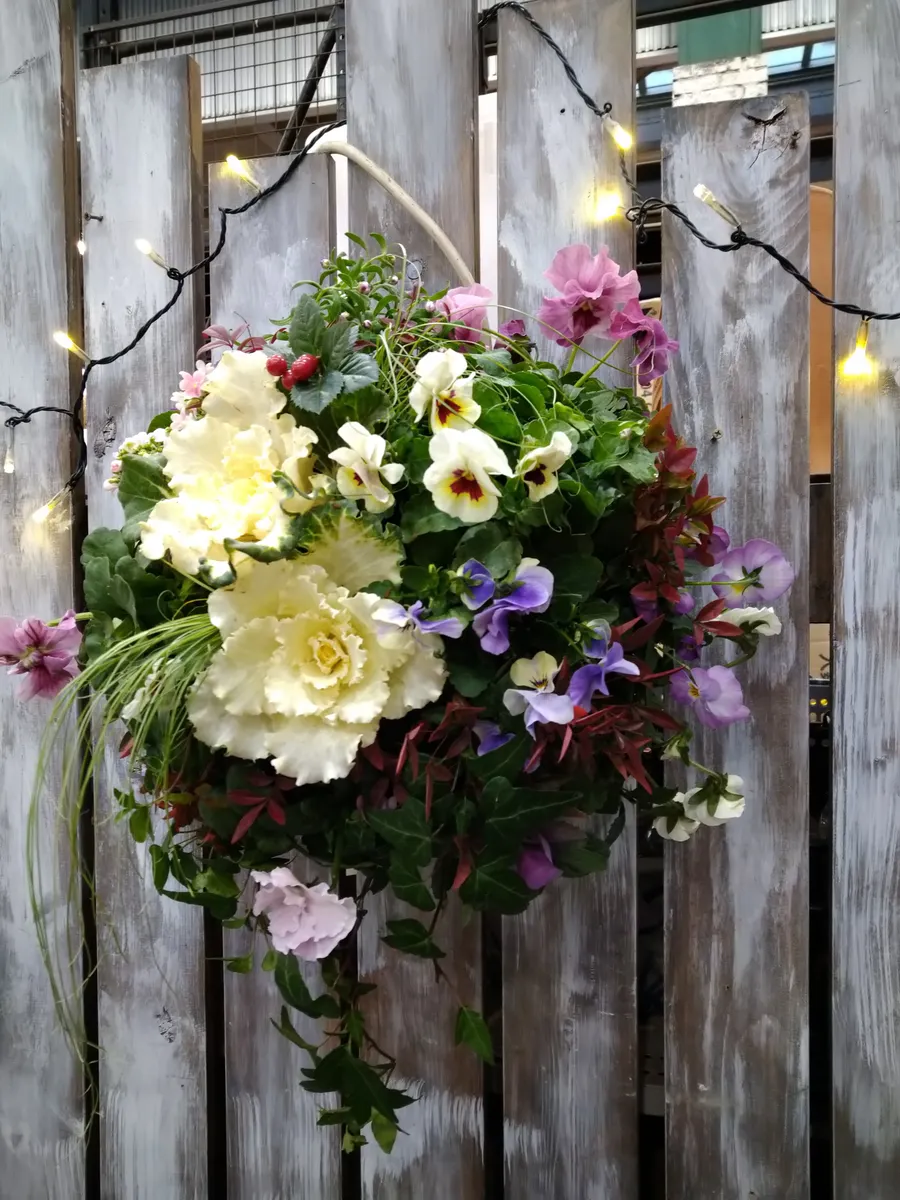 投稿を表示葉牡丹の優しいお色も映えて、綺麗なハンギングバスケットですね💐