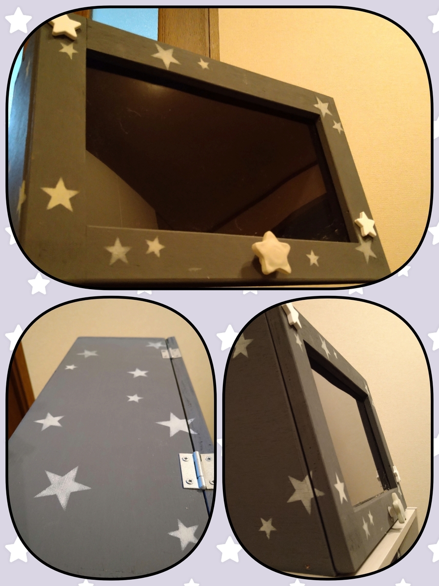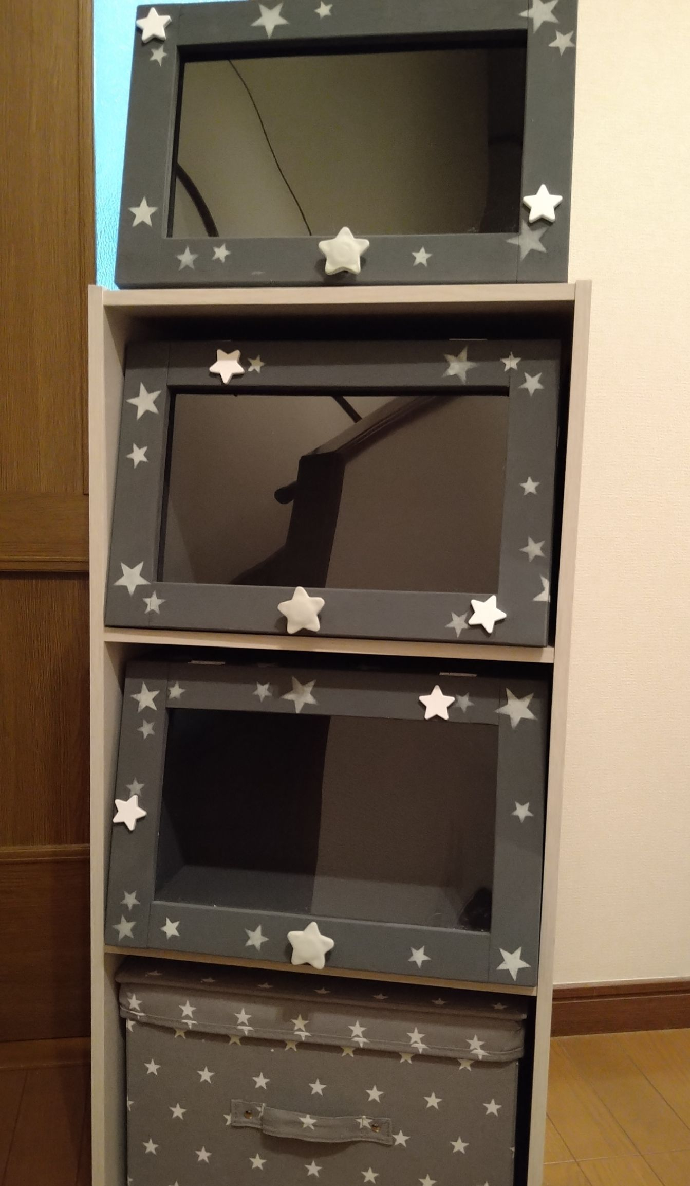 我が家の収納BOXはグレー地の星柄が多いので合わせて塗装、ステンシルしました。