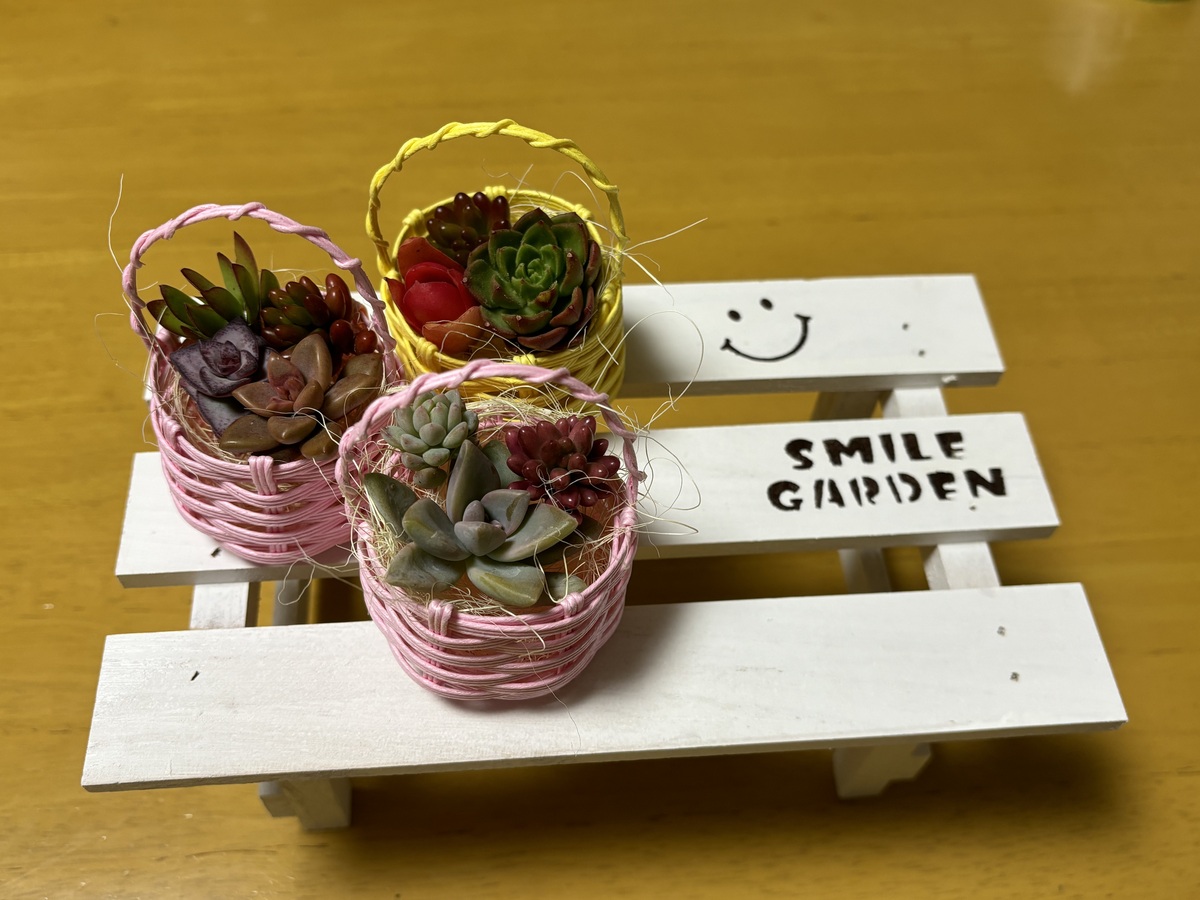 多肉ちゃんを入れているクラフトバンドの入れ物も手作りかしら?