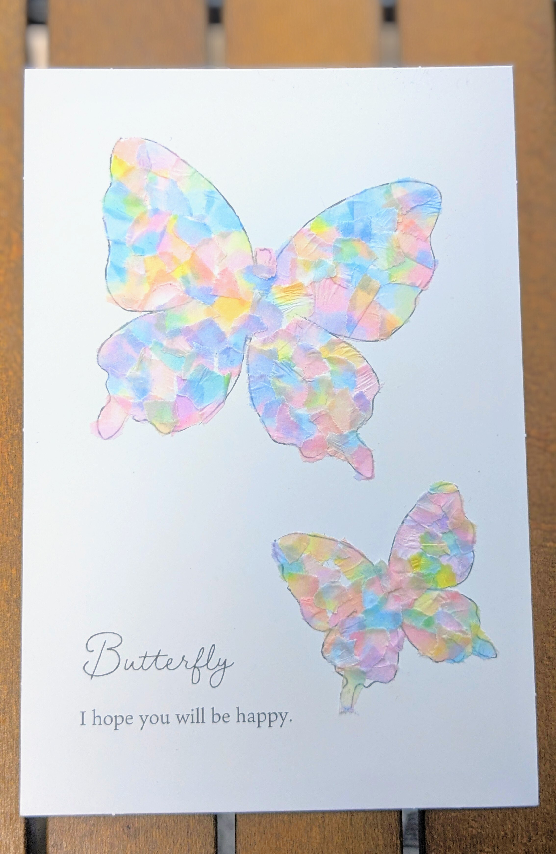 投稿を表示蝶々🦋のちぎり絵、水彩画のような透明感のある色彩が綺麗ですね❣️
