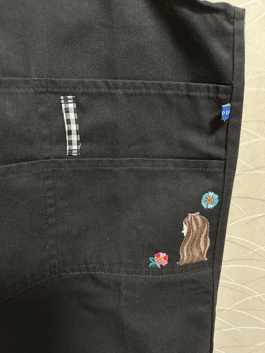 黒い布は持っていなかったので、黒いチェックの布を何枚か重ねて縫い付けました