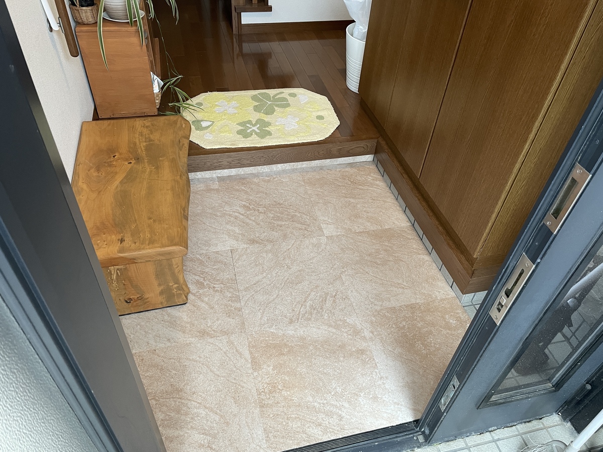 我が家の玄関はタイル貼りなのですがザラザラしたタイルで土がつくと中々お掃除が大変で何とかしたいなと思ってました。