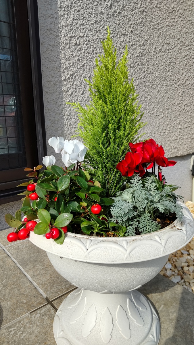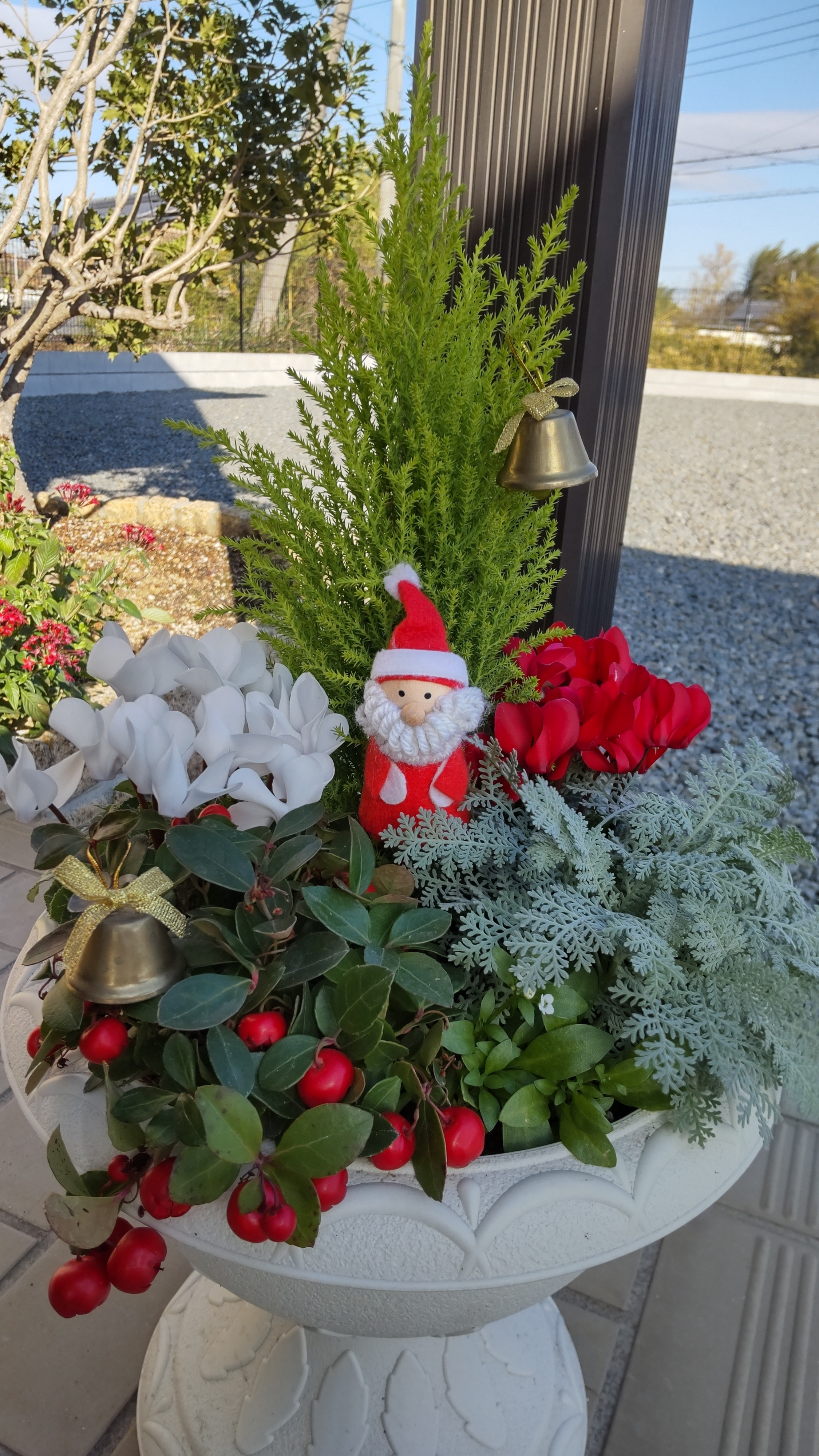 投稿を表示🎅さんや🔔の飾り付けが映えて、素敵な寄せ植えですね✨