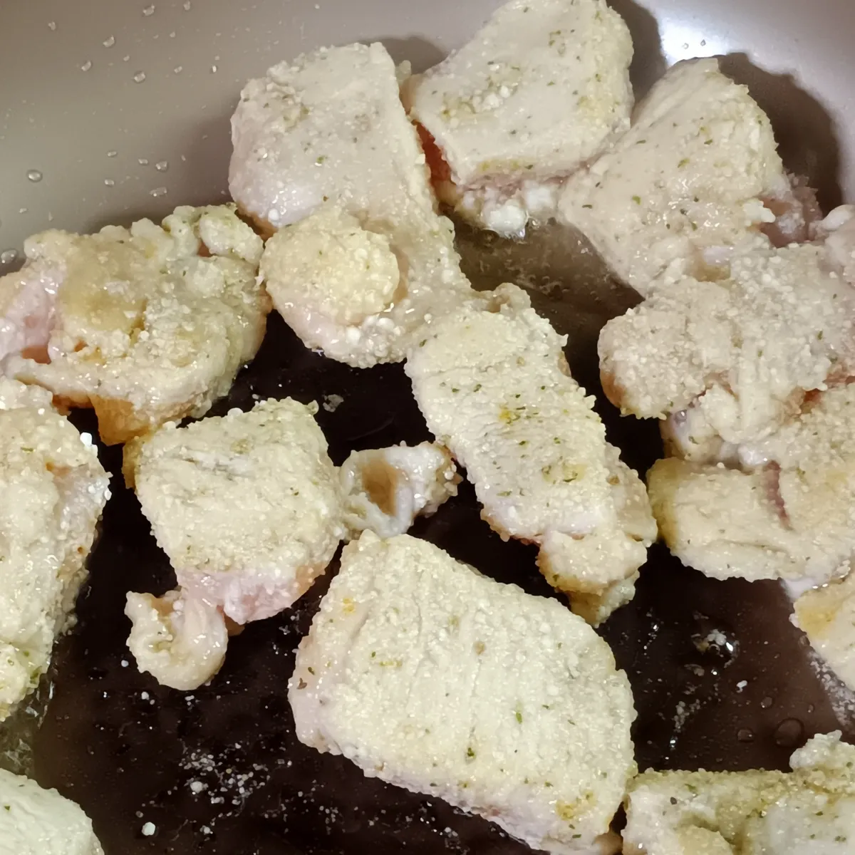 オリーブ油で、フライパンで焦げ目がつくまで焼く