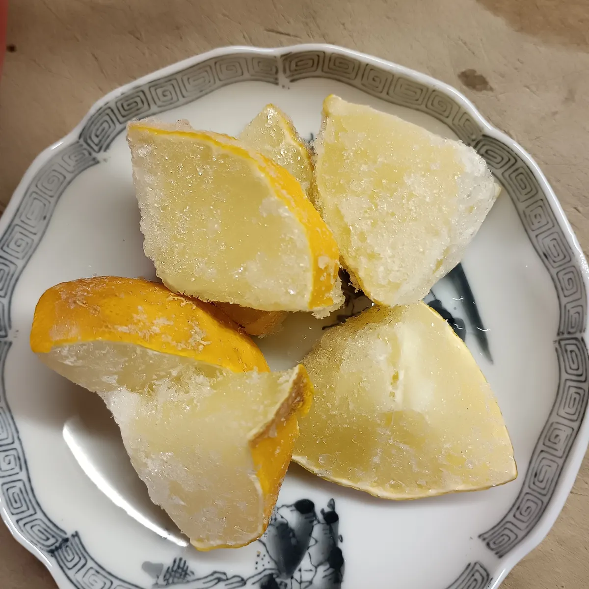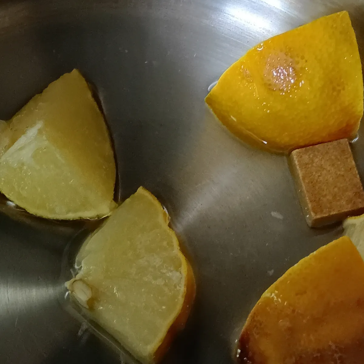 レシピには、レモン汁を揉み込むとありましたが、普段紅茶などに使って残ったものを乱切りにして冷凍していました。それを消費しました(凍ったまま鍋にイン😆)