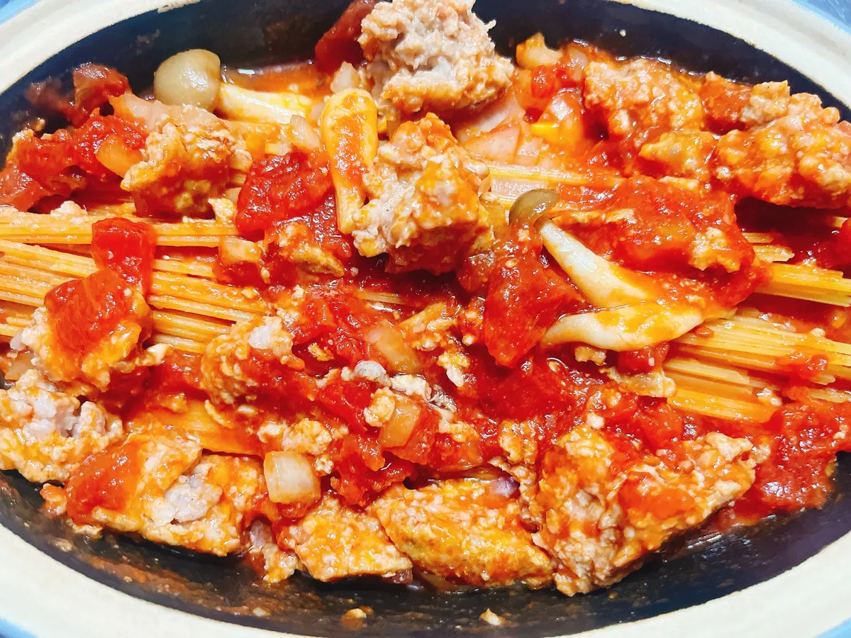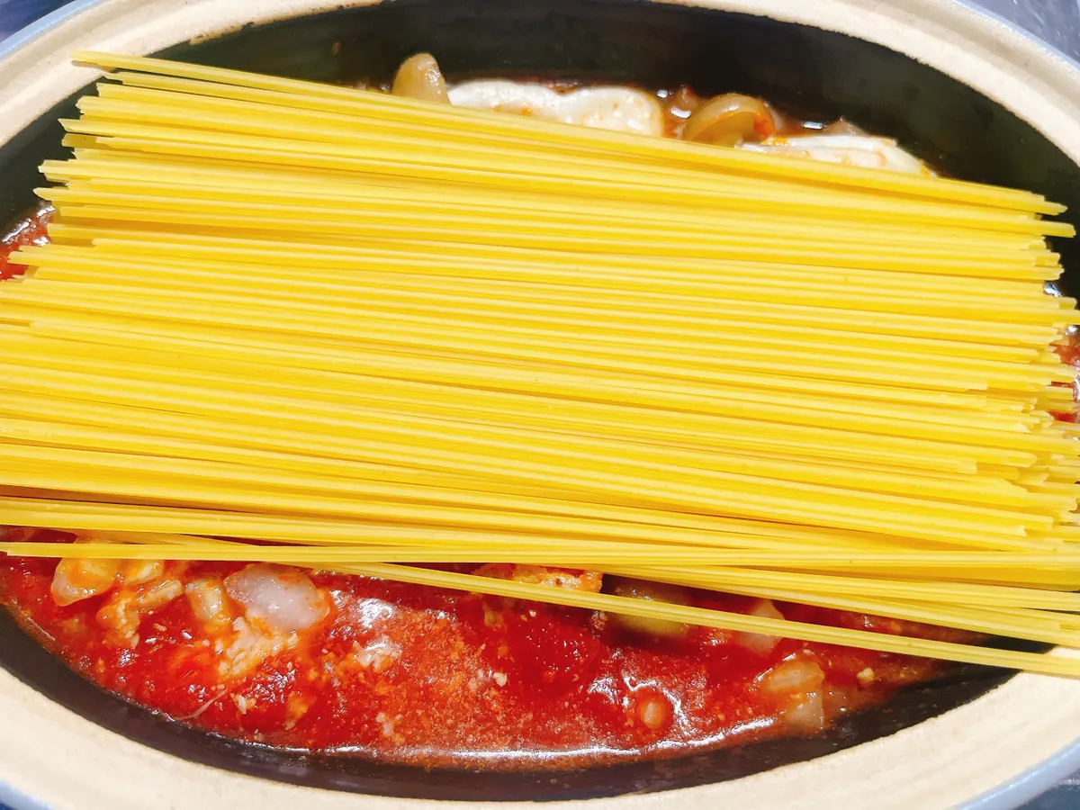 (早湯でパスタじゃない場合は、お水を少し増やしてこの段階でパスタを入れてもいいかもです。