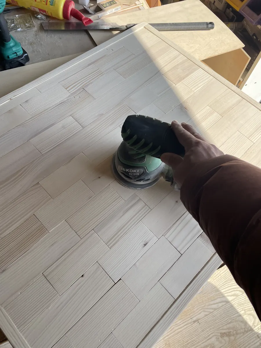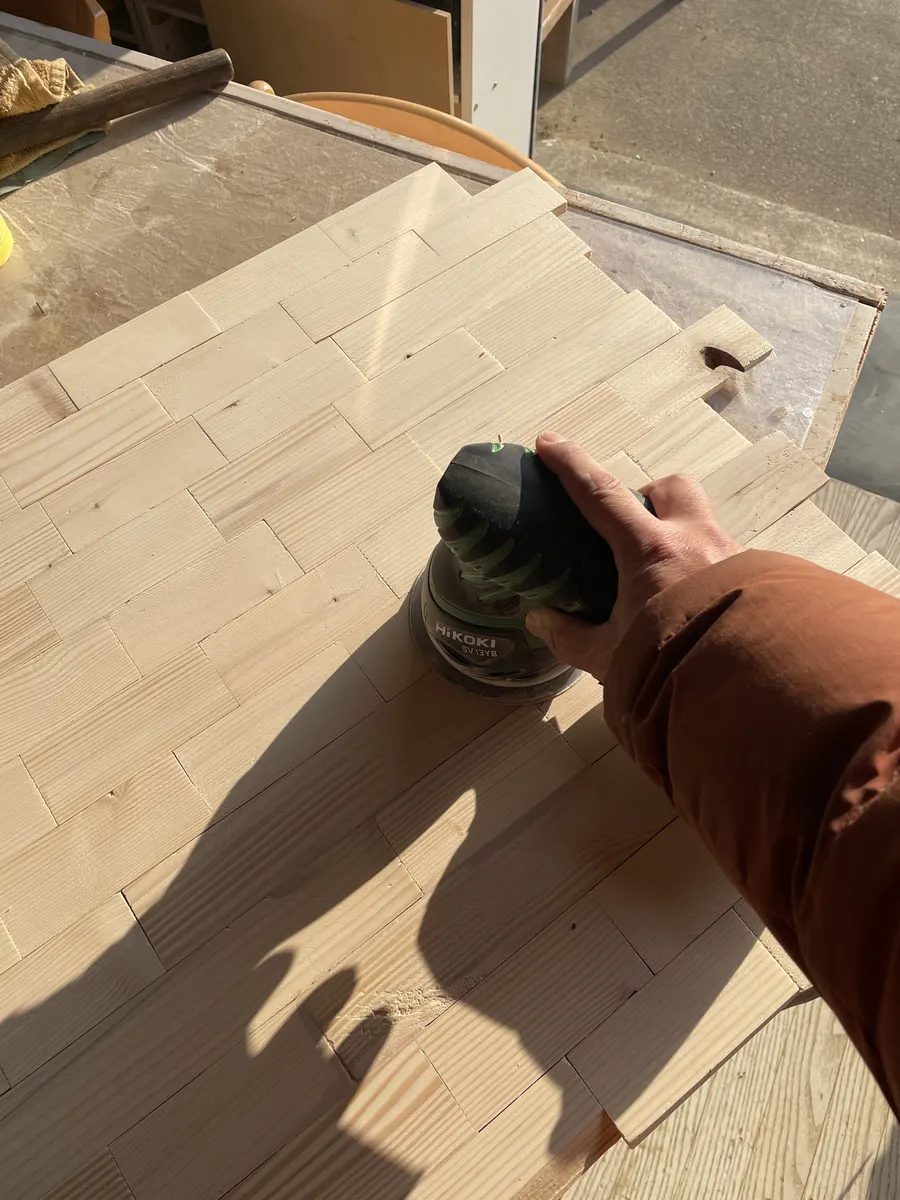 天板が出来上がりましたのでサンダーを掛けていきましょう♪