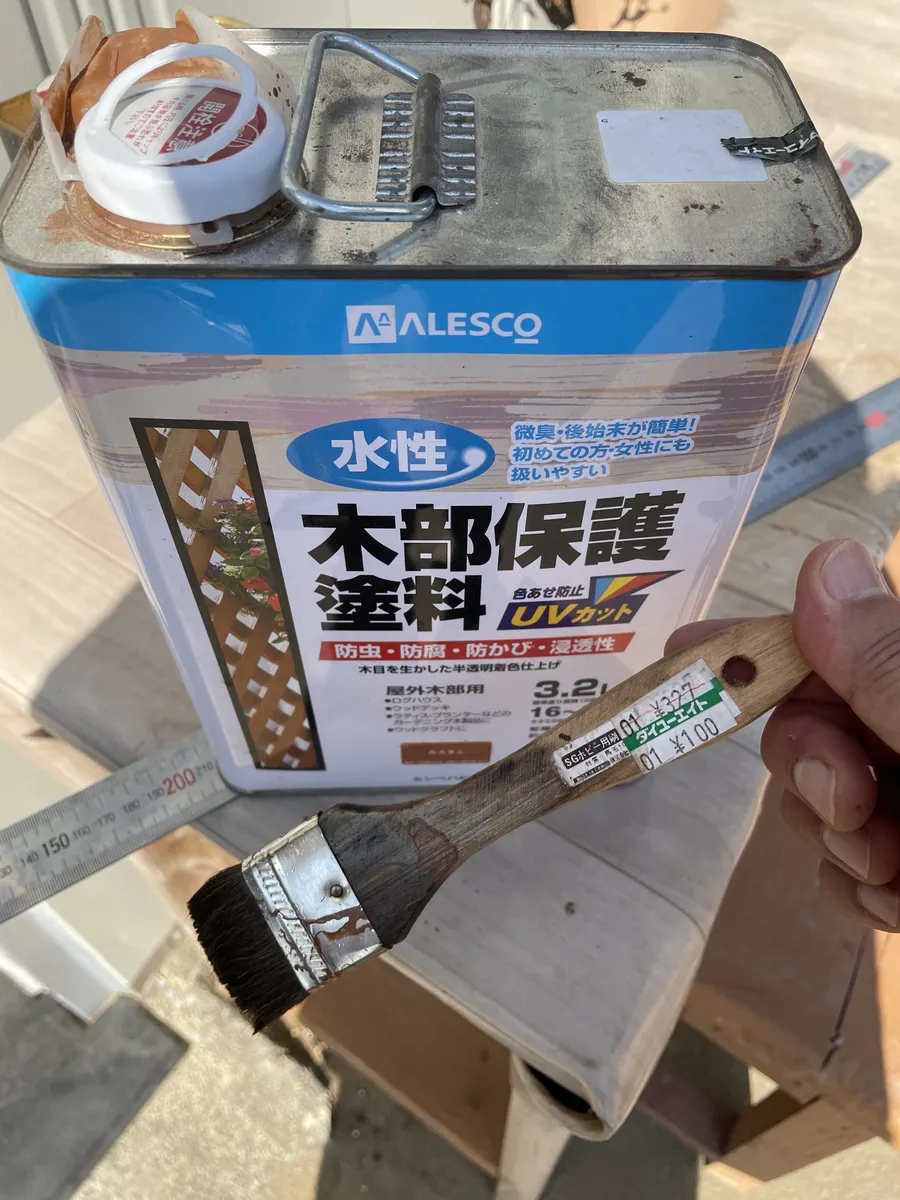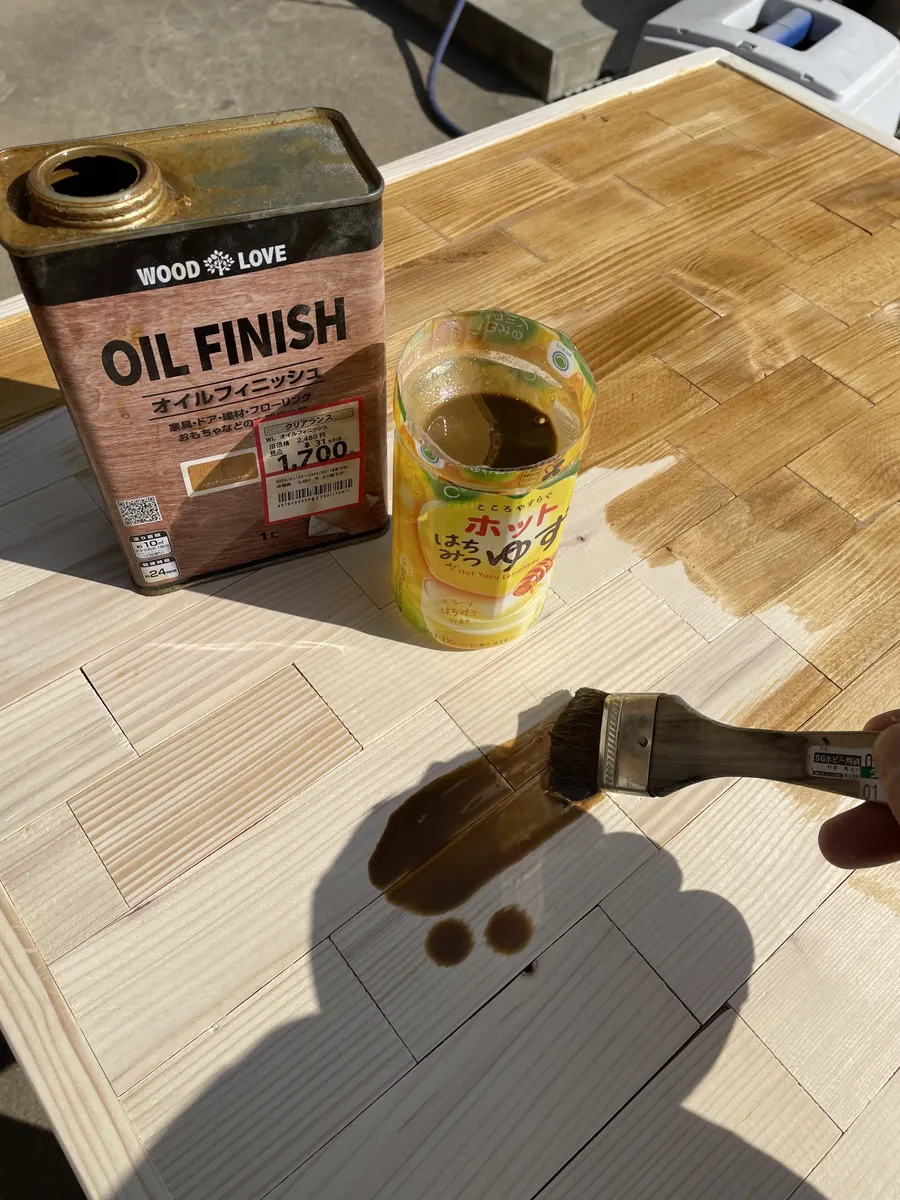 続いて塗装に入ります。亜麻仁油ベースのステイン塗装をします。