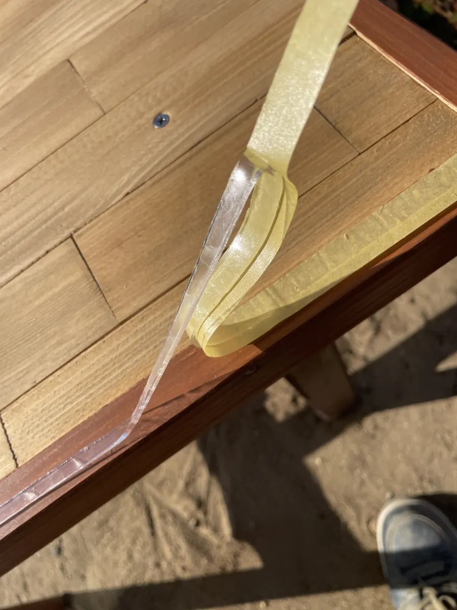 こんな感じで透明板と天板の接着が終わりました🔚1メートルテープ一個で足りちゃいました笑笑