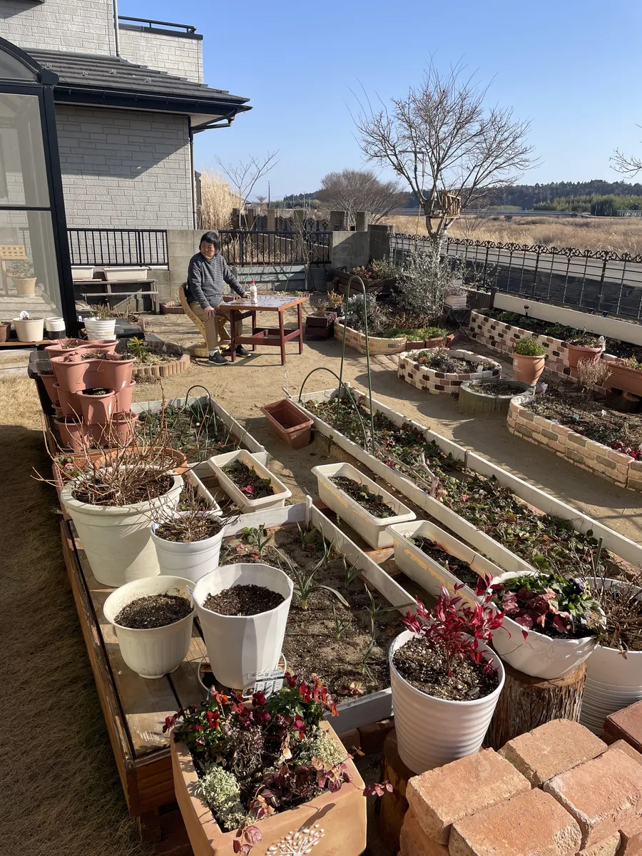 お庭でお茶会、暖かい日のお楽しみですね😆